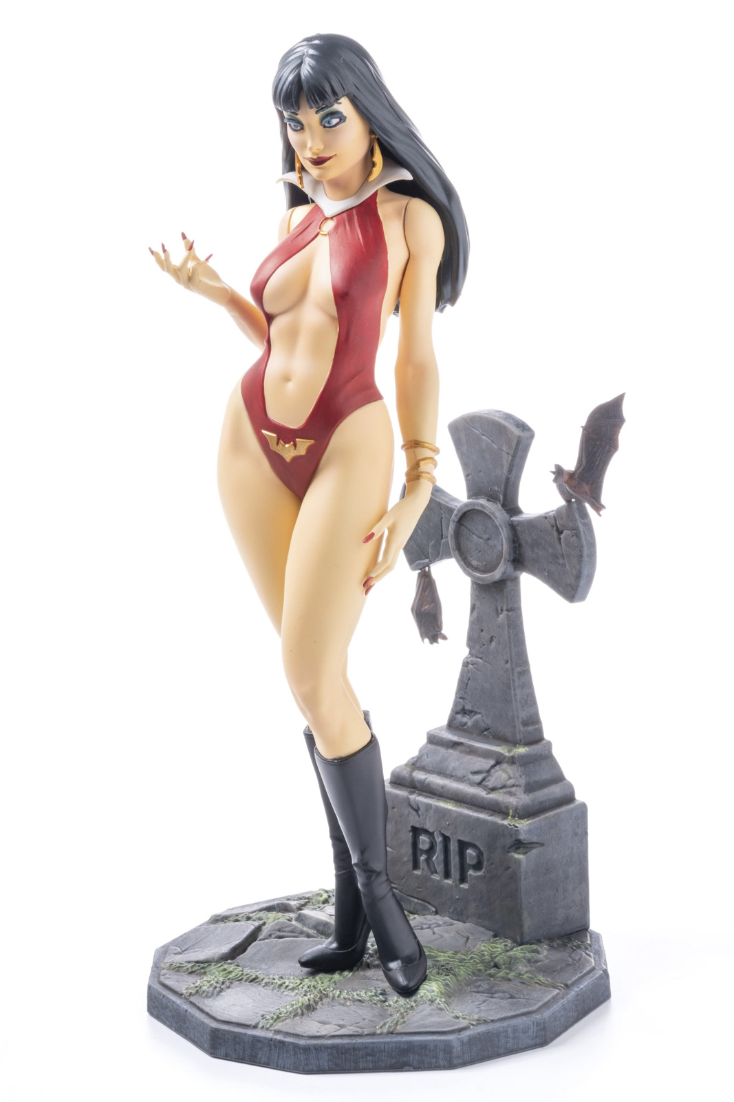 同じくドライブラシで明暗のあるグリーンを草の彫刻に塗りつけて完成!墓地に佇むヴァンピレラちゃんが完成しましたとさ。そんじゃまた!