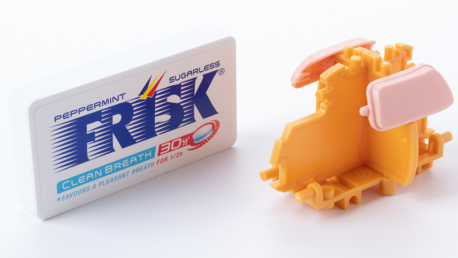 色分けは口の内部以外カンペキ(そこはシールで補われます)。マイルドで柔らかそうな曲面がピシーっと合体する様子は普段組んでいるメカのプラモと全然ちがう感触で楽しいですね。
