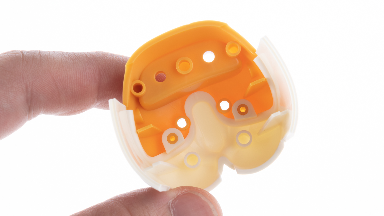 私がビビったのはここ!瞳のパーツとそれ以外のパーツの艶が違うんですよ。モサモサしたフェルト造形のモルカーにおいて、唯一ウェットなテクスチャを持った瞳が饒舌に語るから人々はモルカーに心酔したのだと言って過言ではないでしょう。それにしてもこういうキャラクターって瞳の位置がちょっとずれただけでもすごく違和感を感じるし、顔の曲面と瞳がピタッと合わないと嫌だなぁ……と思いながらこのパーツを顔面にはめ込んでさらに仰天!