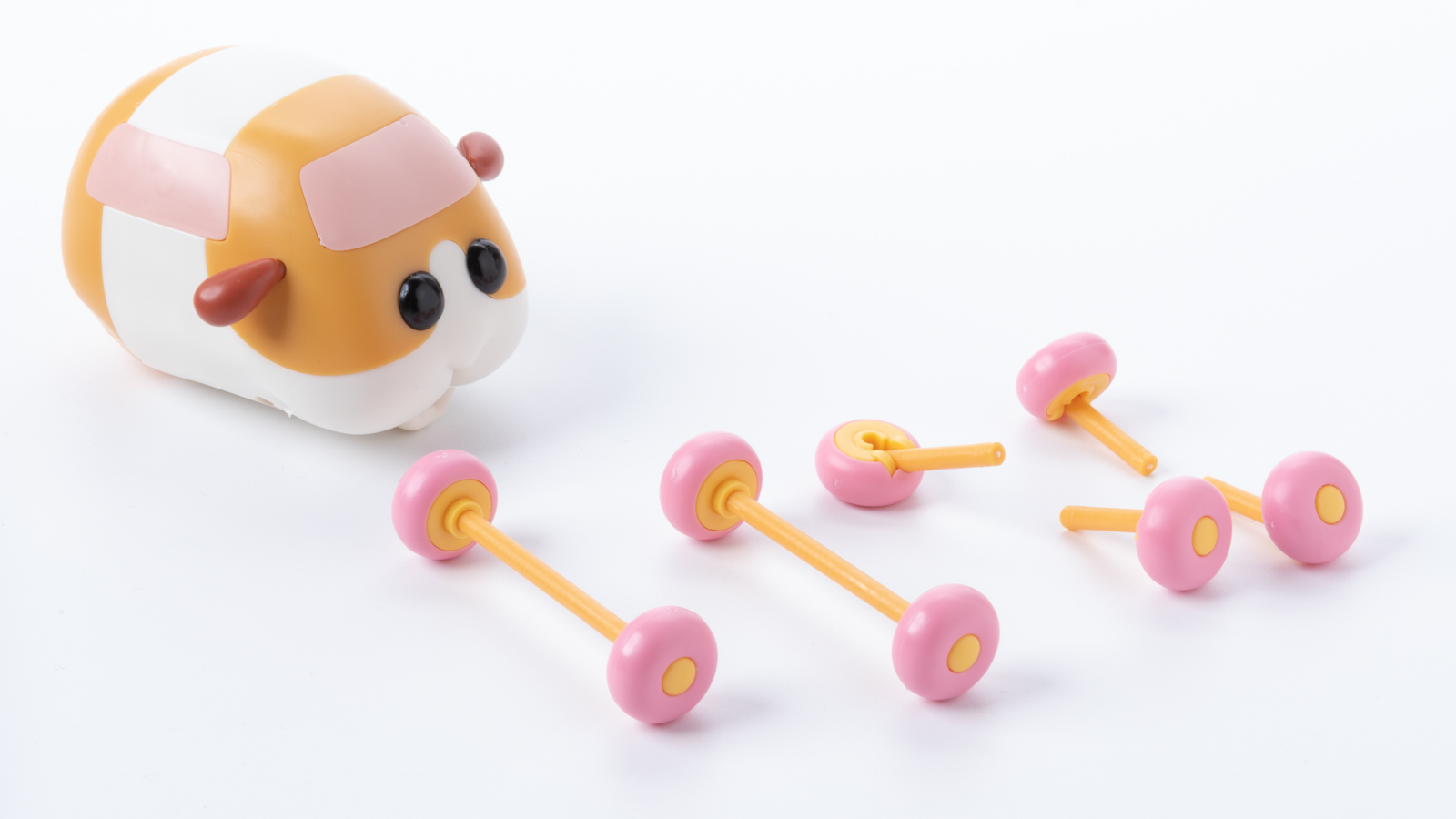 とくにポーズ用タイヤの方は4つのタイヤがクルマとは全く違う原理で動くため、「タイヤが回転して走っているのかタイヤごと上下して歩いているのかよくわからん」というモルカーのアクションを表現している。正直「どっちかが入ってりゃ充分成立するでしょ」という意見もありましょうが、お子様がPUI PUIと転がして遊ぶか、ロボットモデルのようにアクションポーズを取らせて飾るか……。これは完成後の「遊び方」に幅を持たせるナイスなアイディアです。
