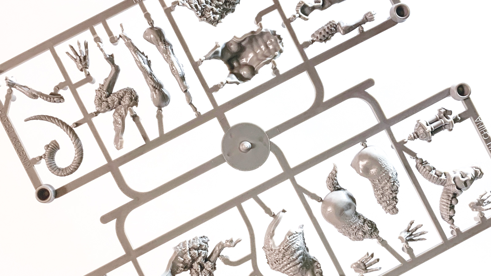 さて、このキットは「ネイキッド」と呼ばれる販売形態(ジッパー袋にポーンって入れただけ)なのでパッケージがありません。さらにキングダムデスは組み立て説明書はありません。一部のミニチュアは組み立て工程が公式サイトに掲載されていますが、この商品はないのでカンで組みましょう。地図さえない、それもまた人生です。