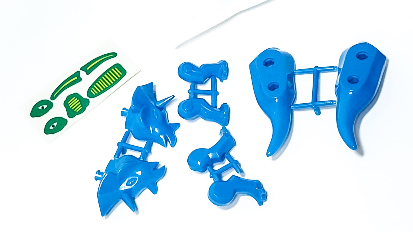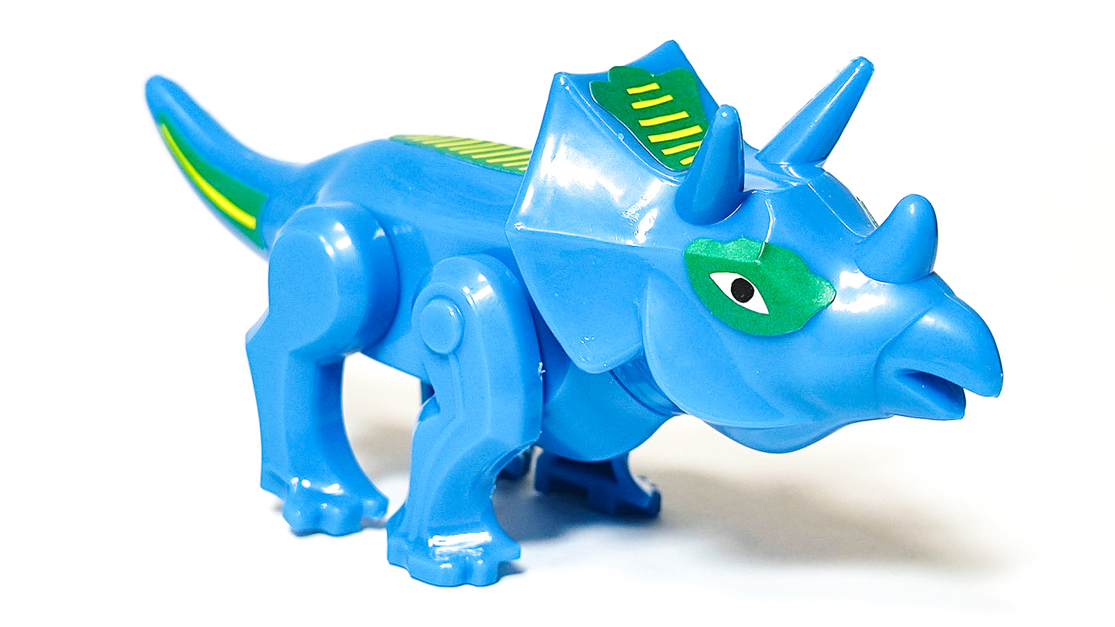 ふらりと寄った輸入雑貨屋さんにふらりとおいてあったプラスチックのトリケラトプスくん。build your own……という表記からして自分で作るっぽい?袋からあまり情報が読み取れず「プラモだったらラッキー、ざっと組み立てるだけでもいいか~」くらいの気持ちでちょっと買ってみました。
