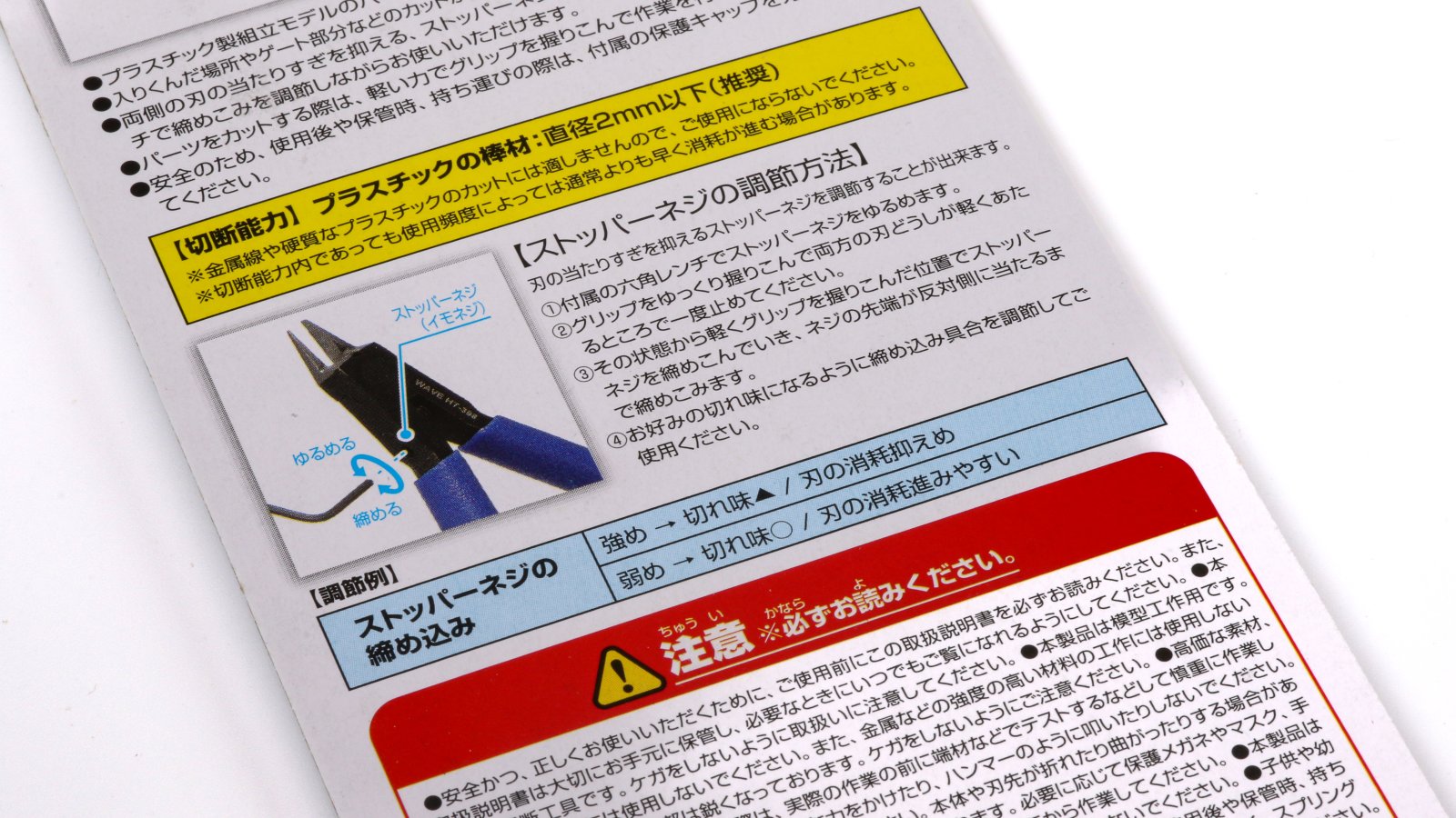 ただまあ自分はけっこう乱暴にニッパーを使う人間なので、どちらかといえば耐久モードでガジガジいきたいほうです。とはいえパッケージの裏に棒材でも2mmまでにしてくれ、という要請もあります。