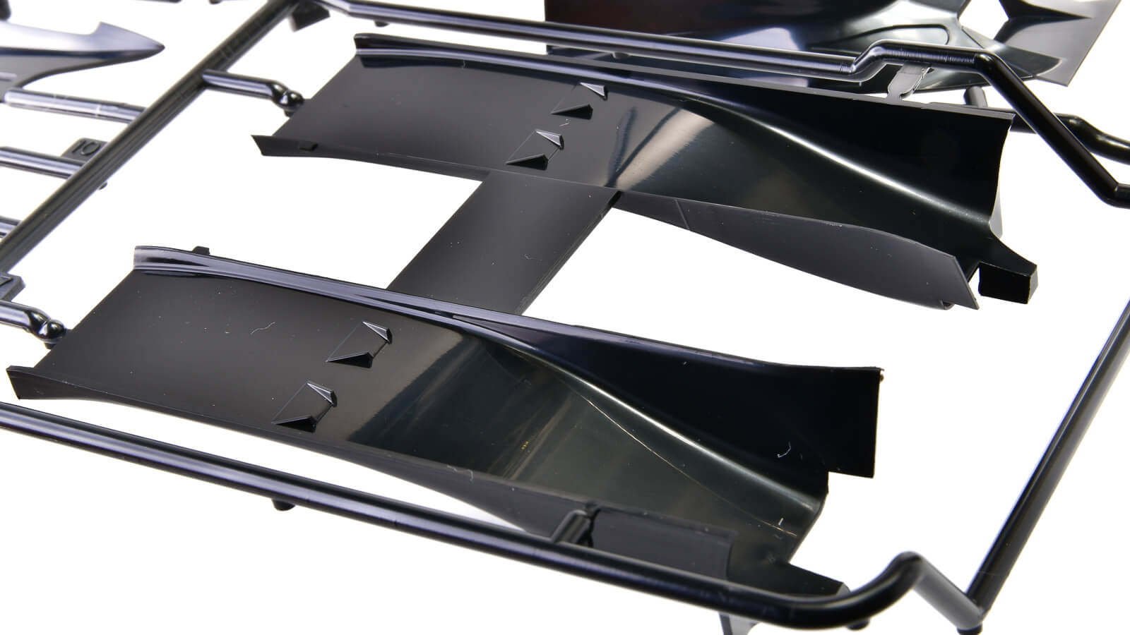 F1マシンの顔ともいうべきノーズ。コクピット前までゆるやかに上がっていくカーブと、タイヤにつながるサスペンションの根元をカバーするふくらみ、このふたつがきれいに融合しています。光の入り方もまたキレイで、この曲線の良さを教えてくれます。