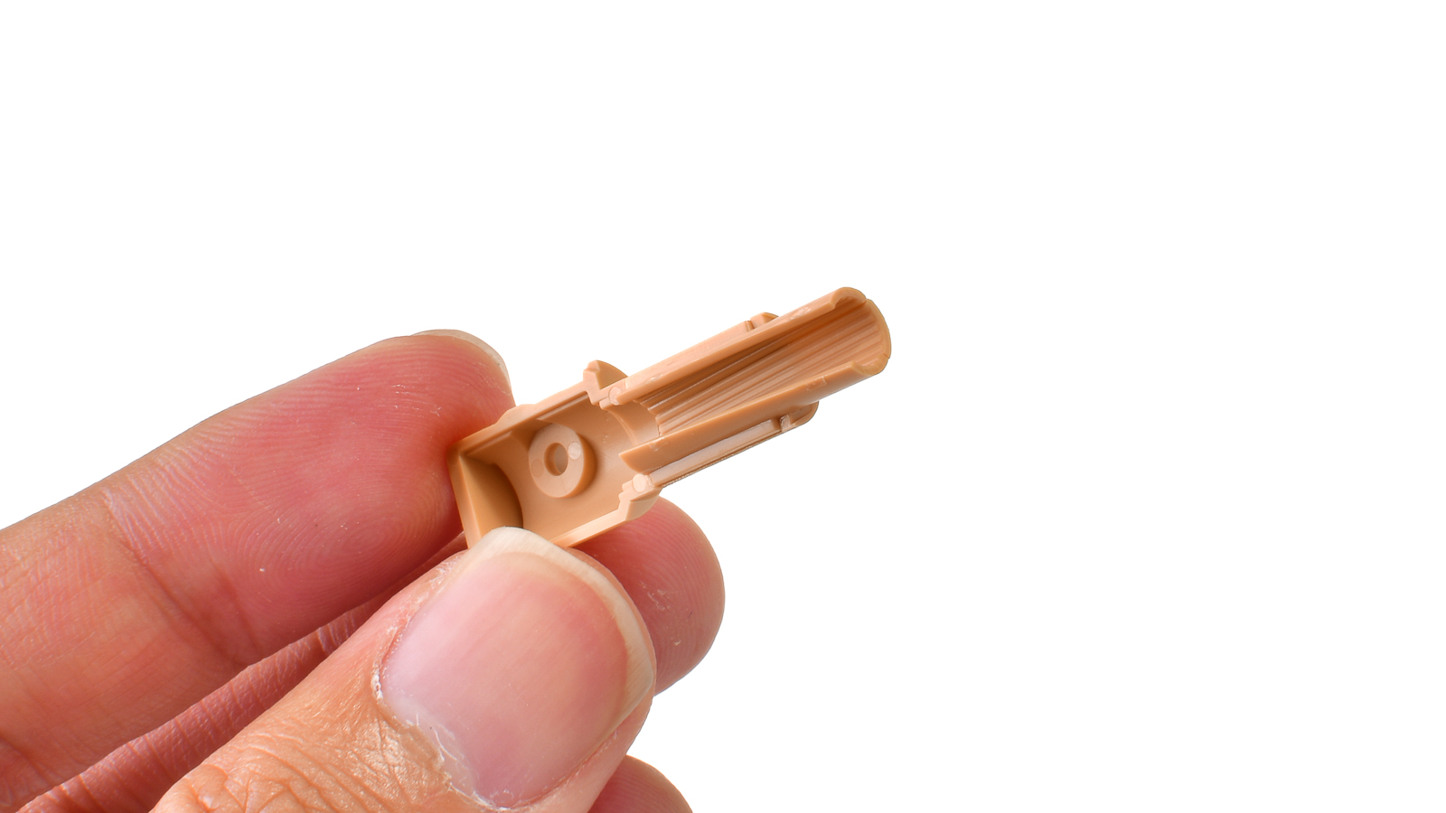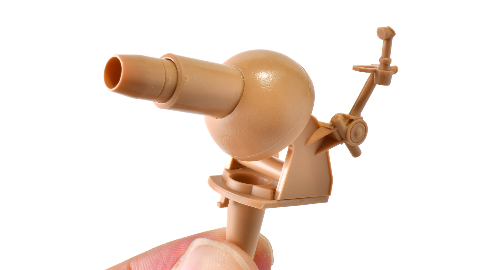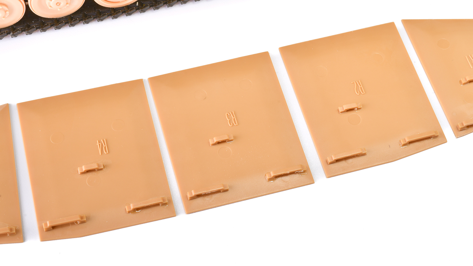 僕がこのキットで一番好きな部分が、車体。車体の横からL字の棒が生えています。そう……これによってシュルツェンがズレることなく、ピシッと収められるのです。板が1枚ずつ分割されていて、より実車らしくなっているのですが、バラバラということは「ズレる」可能性があるわけです。その可能性を極力抑え込むために、車体の方に基準を持ってくる。最高です! 実際、L字の棒が別パーツになっているキットなどは、慎重に位置決めをして組んでいくことが必要となるんですよ〜。