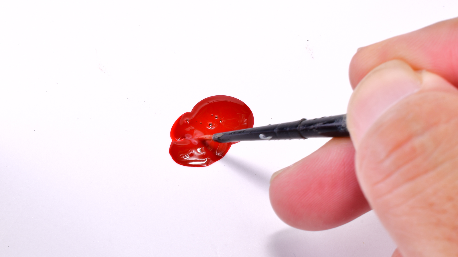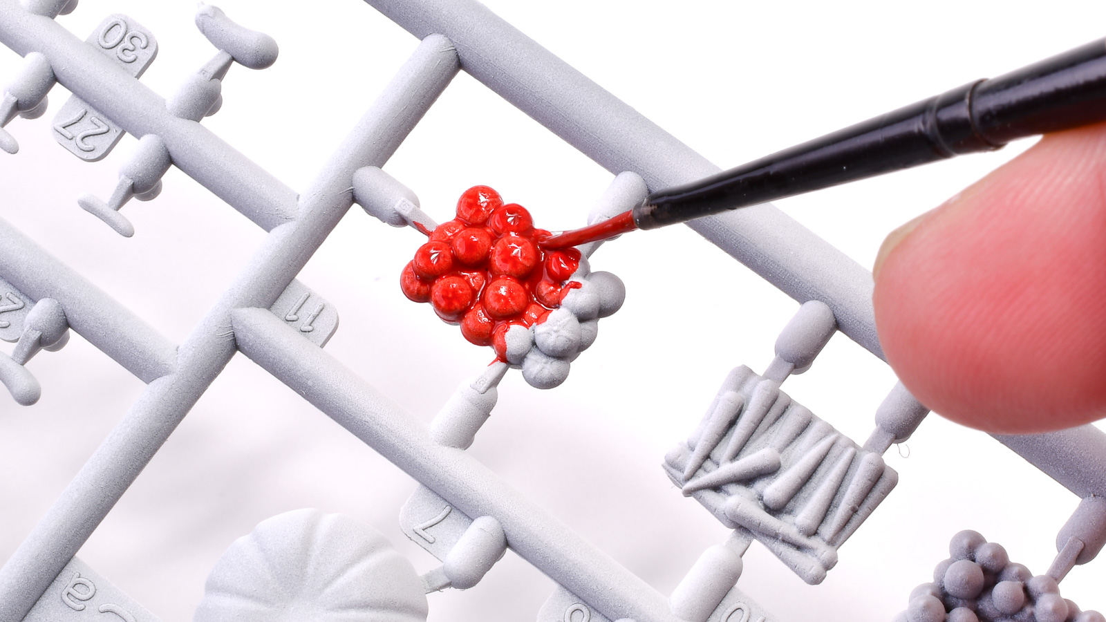 ひと塗りすると、ディテールの奥までぐっと伸びていきます。しかもこの発色です。下地の白を受けて、凄くきれいな赤となっています。ボトルから出した濃度の塗料で塗った感じの伸びの良さは、エナメル塗料に近い感覚があります。