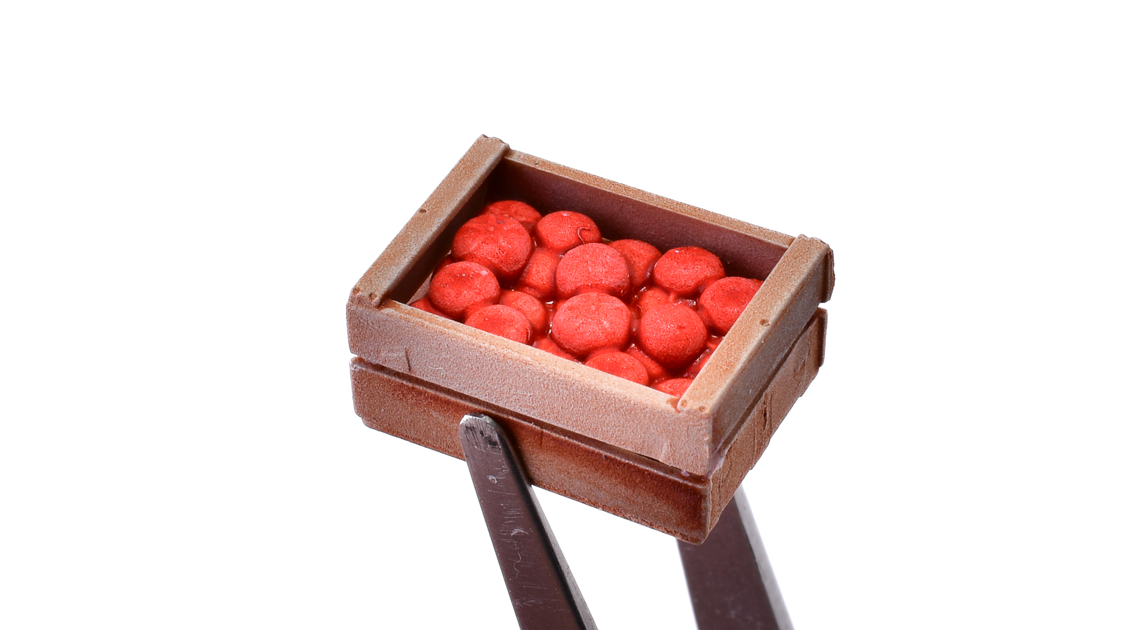 エクスプレスカラーの赤で、トマトのプラモを染め塗りしてみました。結論、めちゃくちゃ色が発色して、今回塗ったトマトのようなパーツでしたら、塗装は1分で終わります(乾燥時間は別ですよ)。しかもひと塗りで濃淡が出てきれいな仕上がりになるのです。これを体験してしまうと、エクスプレスカラーで他のプラモもたくさん塗りたくなってしまいます。