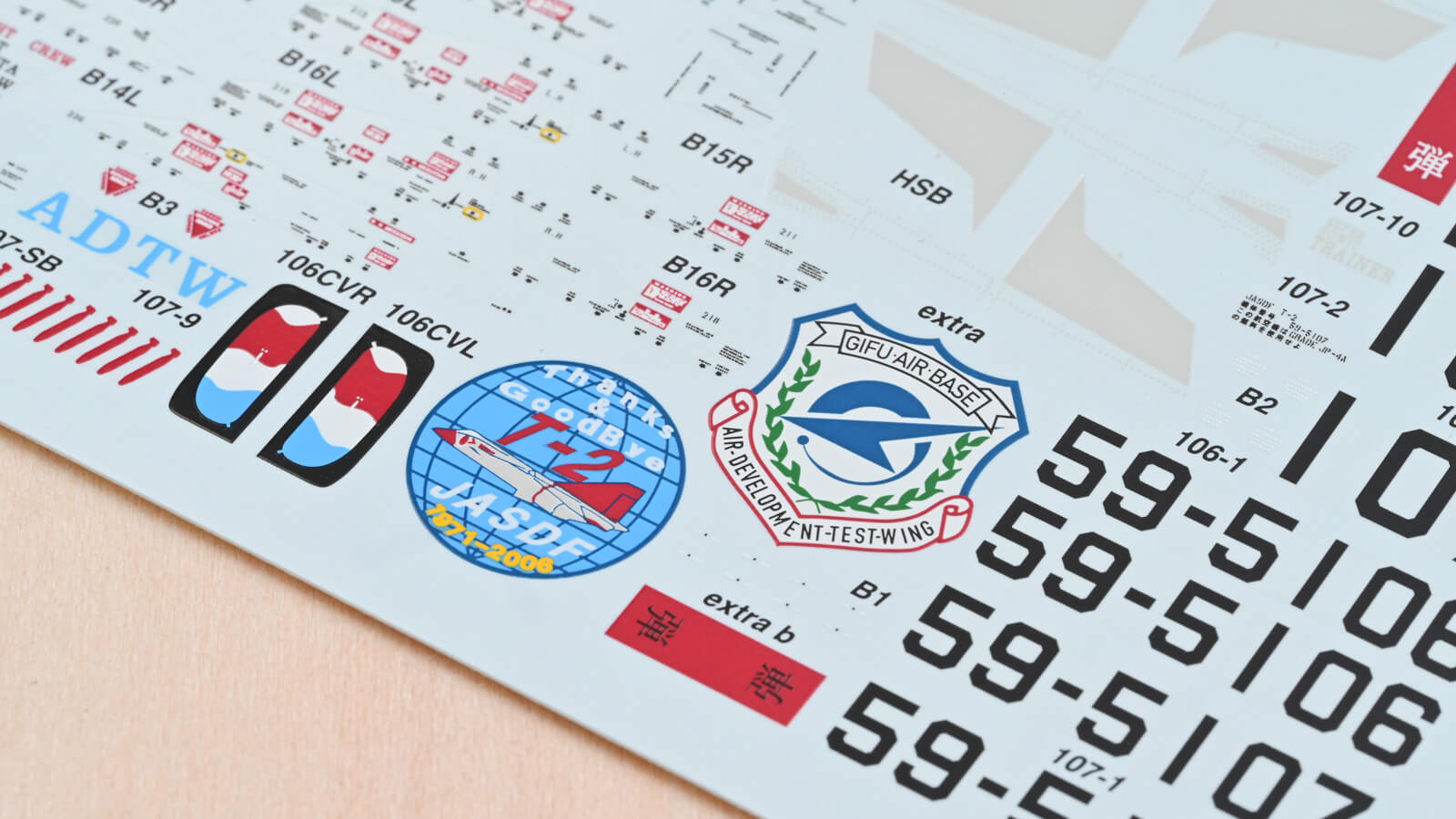 「ふりかけ」が青ノリだけじゃつまらない。食材が多い方が良いに決まってる。そんなあなたも大満足のエクストラなデカールたち。ワッペンを模したデザインに装備試験時のマーキング、インテークカバー用のデカールまで、大満足の数々。