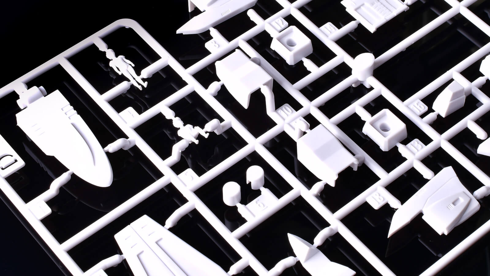 まず成型色。これが本当に素晴らしいです。赤や白ってのは難しくて、色味が微妙だったり透けたりしているとすごく安っぽいプラモになります。本キットは透けを抑えながら、ガリアンの絶妙な赤を表現しています。そして白! これがとにかく素晴らしいです。全く透けがなく硬質なトーンなので、パーツのシャープさがより際立っています。