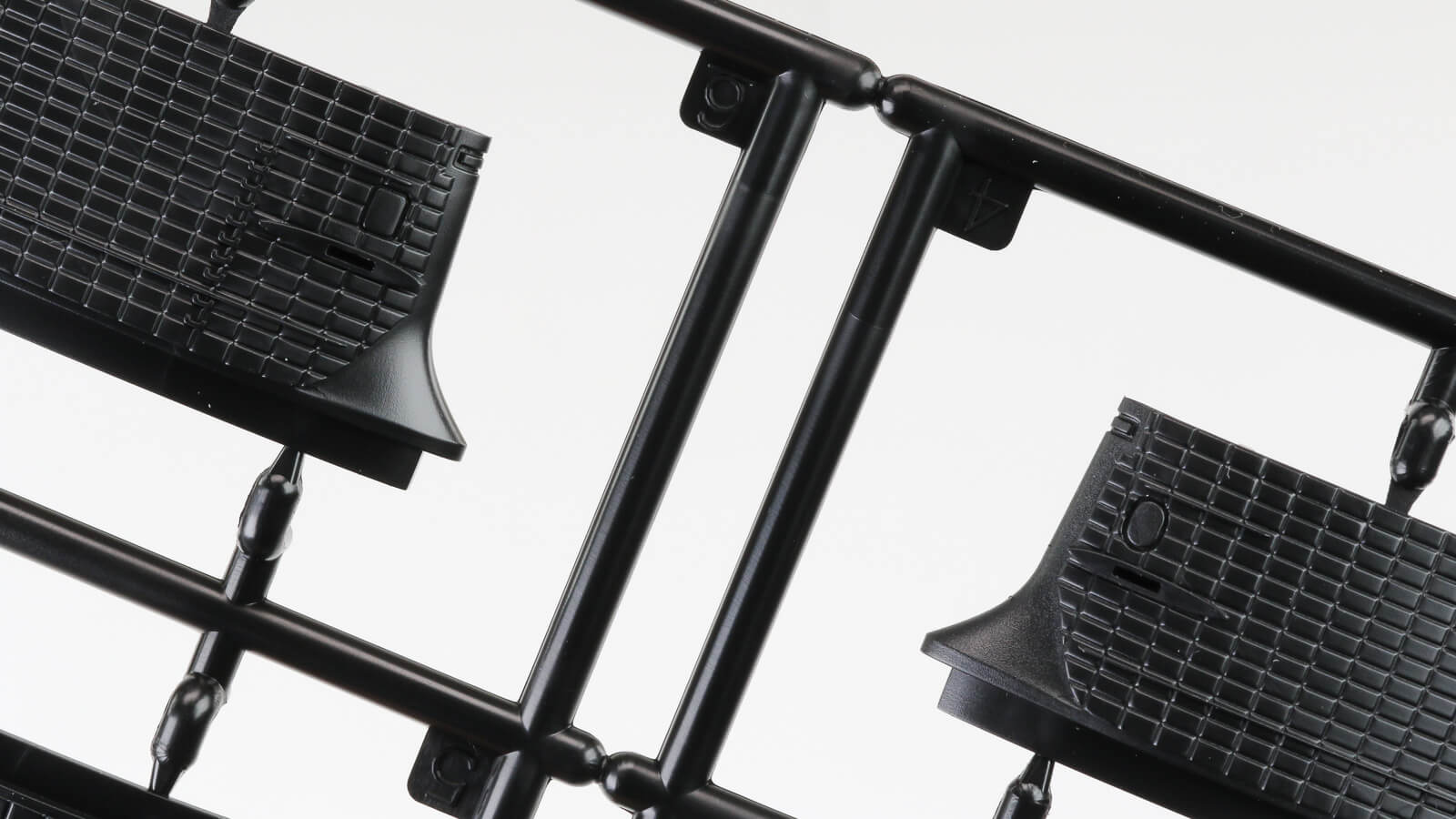 成形色は黒で、パーツ数もほどほど。本体の彫刻もいい感じですね。念入りにたいげい型潜水艦の再現をしています。そのため、上に突き出たセイルがふたつ入っているんです。