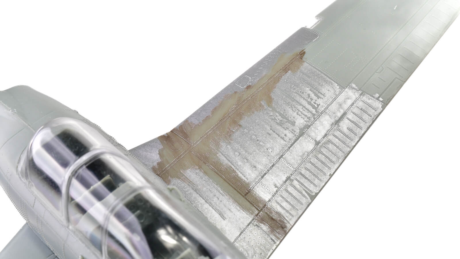 飛行機のパーツにスミ入れした時には、一瞬で溶け出してしまいました。しかし、水性プレミアムトップコート 光沢でコートすれば、スミ入れしてもマーカーの塗料が溶け出すことはないです。メタリックカラーは、茶色や黒などのスミ入れとの相性がとても良いので、さらに重厚な仕上がりを楽しめます。
