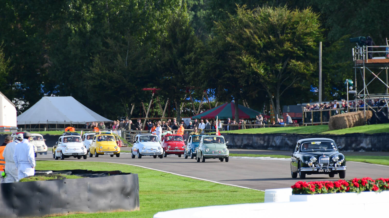 静岡の駿河屋本店で出会った「タミヤ スポーツカーシリーズ No.159 ジャガーマークII レーシング」。箱に描かれた景色は、僕の人生において大きな体験となった「グッドウッド・リバイバル」思い起こさせるもの。それだけで購入を決めてしまいました。最近再販された「タミヤ 1/24 スポーツカーシリーズ No.169 フィアット 500F」の箱と並べると、これだけで幸せな気分になれます。