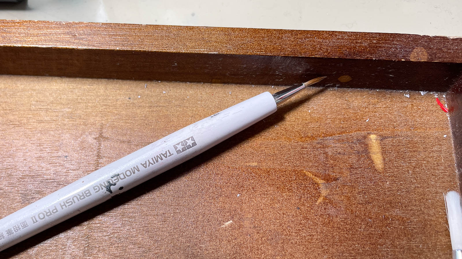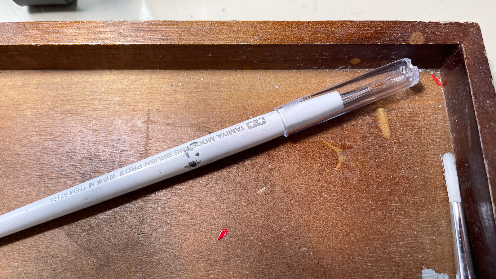 なぜ筆にキャップをすることにこだわるのか。夢中になって模型を作っていると、知らない間に筆先がダメージを受けていたりするんですよ。その一例が下です。