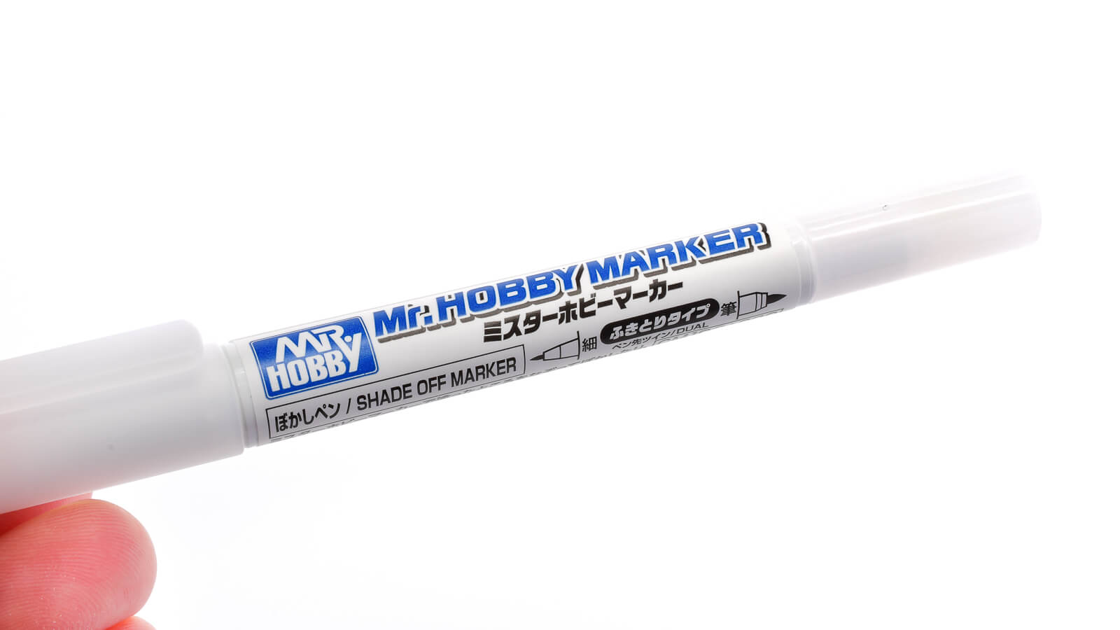 今回の主役は「ぼかしペン」です。ミスターホビーマーカー、ガンダムマーカーリアルタッチマーカーどちらにもラインナップされていて、使い方も成分も同じです。色を塗った上からこのペンで擦ると塗料をぼかしたり消したりできます。これをうまく活用するとかっこいい汚し塗装をペンだけで楽しめちゃうんです。