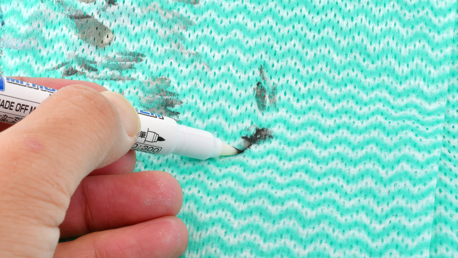 ぼかしペンは使い終わったら布の上にペン先を擦り付けて、ペン先の汚れを落としましょう。ティッシュとかでやると繊維が付いてきて、けばけばになるので注意です。