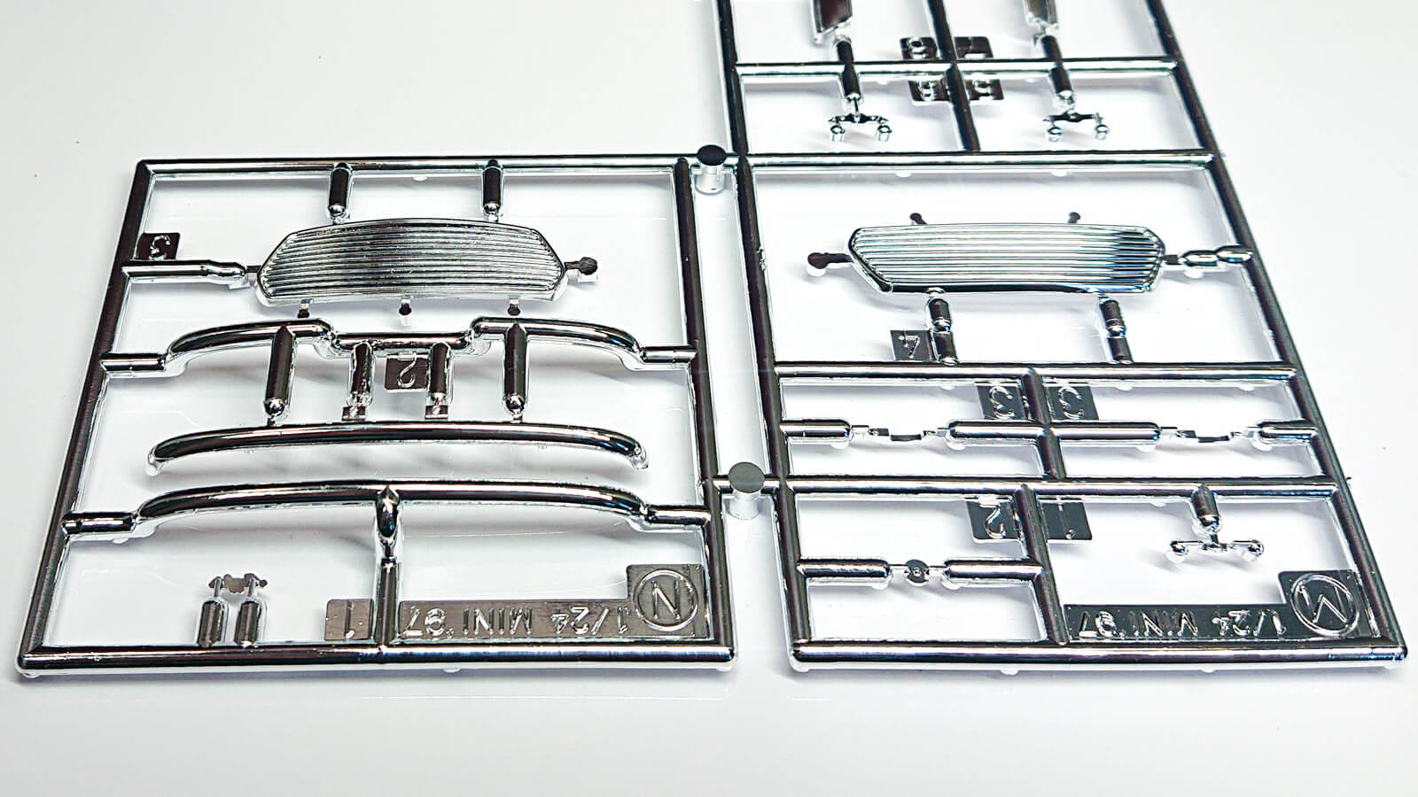 メッキパーツの雰囲気も良く、メイフェアの特徴であるスリットの目が細かいフロントグリルもしっかりと再現されています。これらメッキパーツの多くはアンダーゲートとなっていてゲート跡が目立たない点も魅力的です。