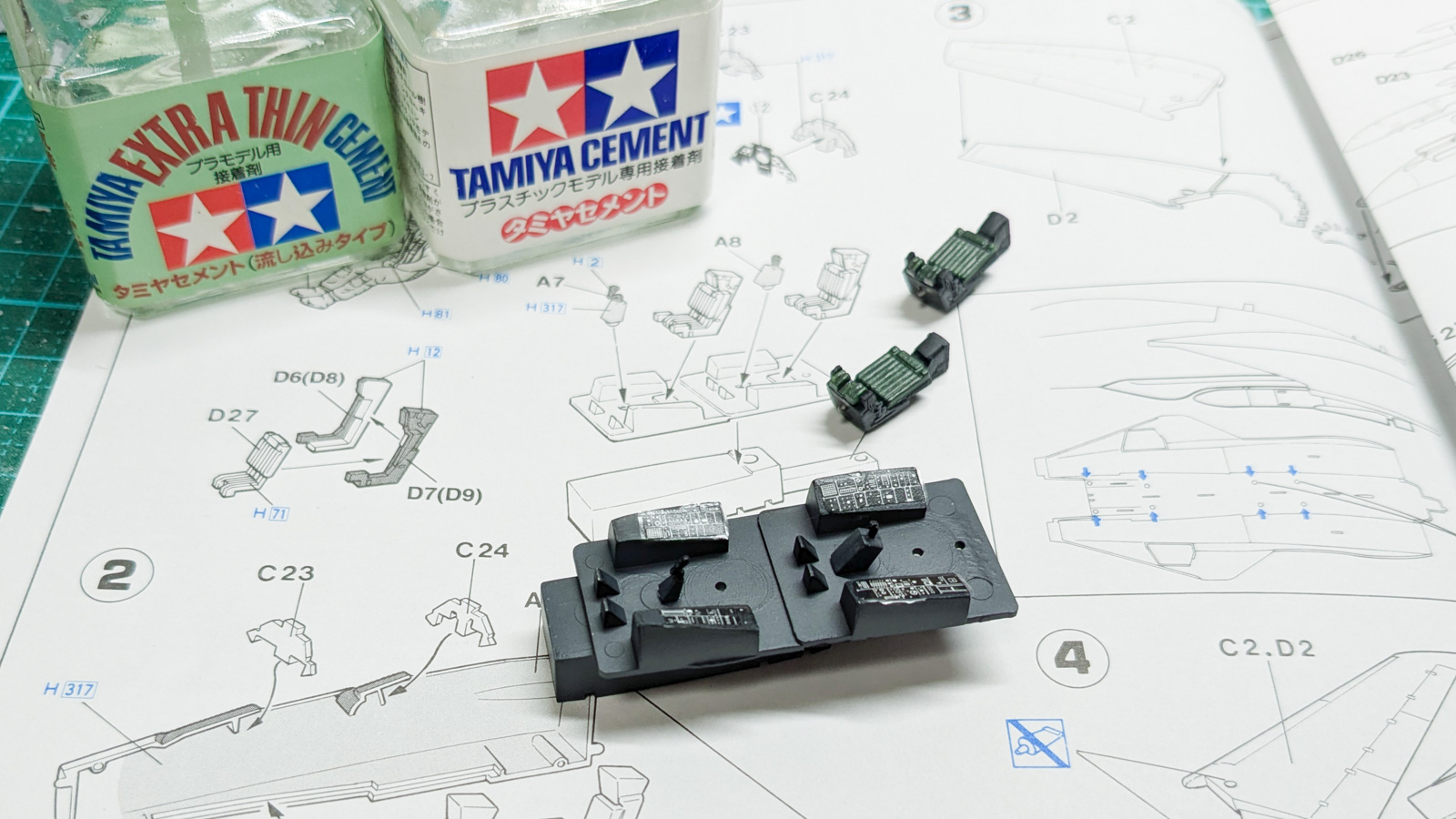 いざ接着!これはコックピット内のシートを接着するために土台?にボンドをぬりぬりしている所ね。