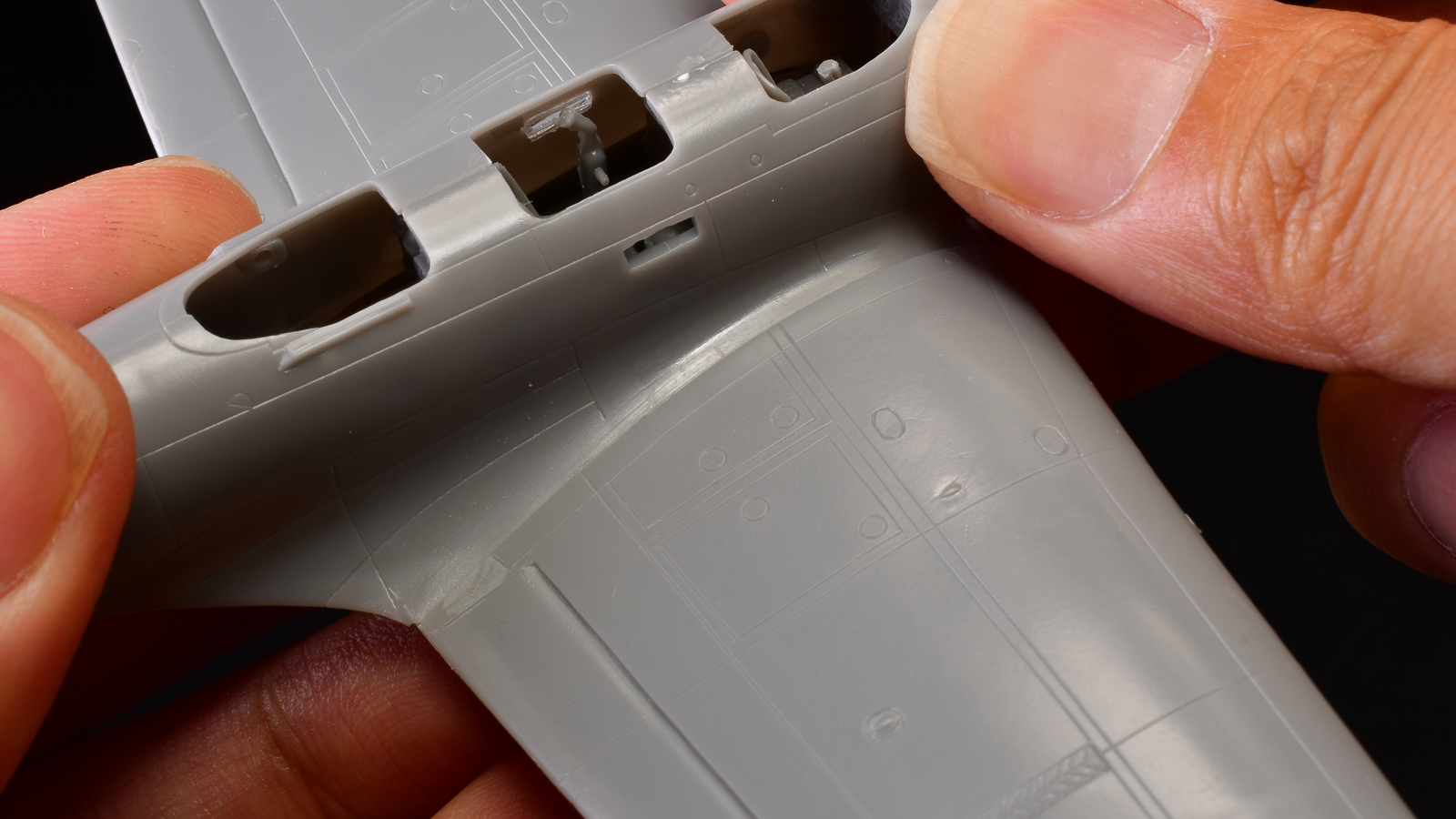 そして主翼もピッタリ!! 貼り合わせて、パーツ同士が合わさっている箇所に流し込み接着剤を流せば美しい翼をゲットできます。
