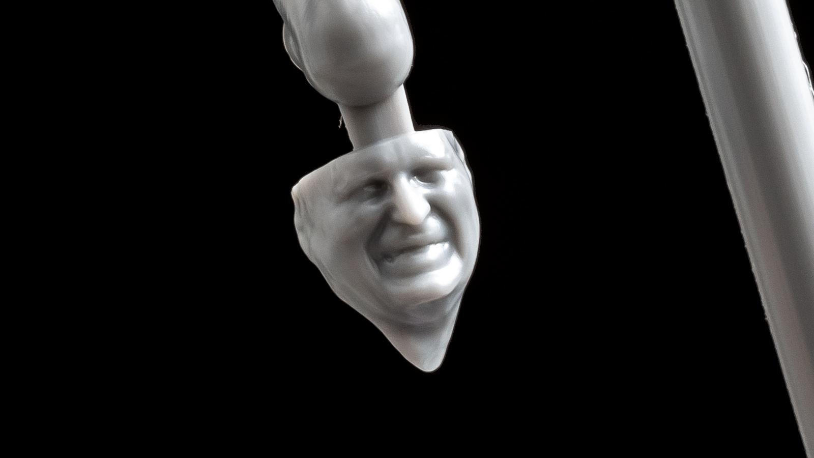 驚いくべきは顔のパーツで、肉眼では「力の入った表情だな……」くらいにしかわからないのだが、マクロレンズで撮影すると口が閉じきらずに歯を食いしばっている様子がわずかに(金型加工の限界とも思える細密さで)彫刻されているではないか。