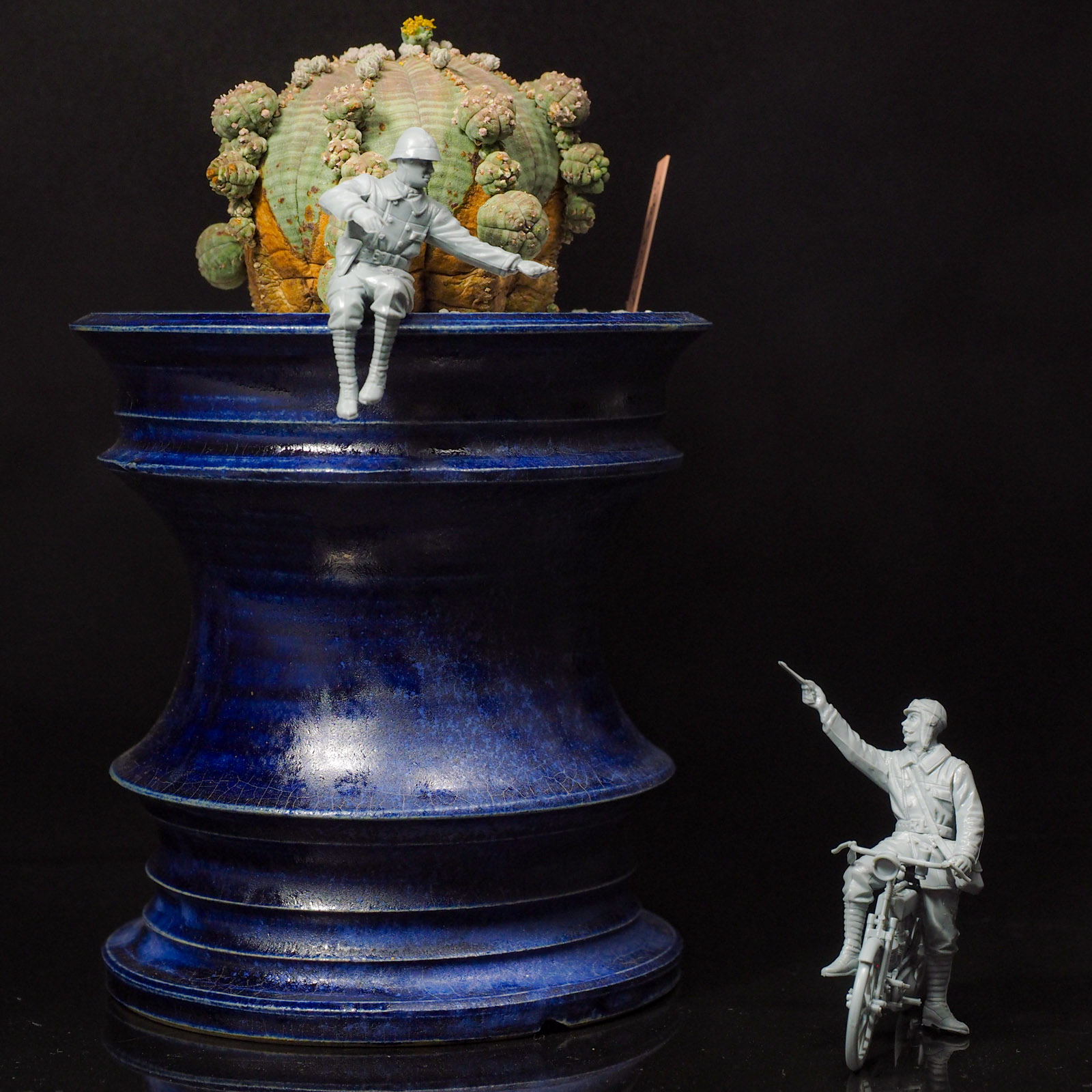 目的のバイクとフィギュアは完成しましたが、せっかくなので、受け取っている人の方も作りましょう。戦車に腰掛け手紙を受け取ろうと手を伸ばすフィギュアです。