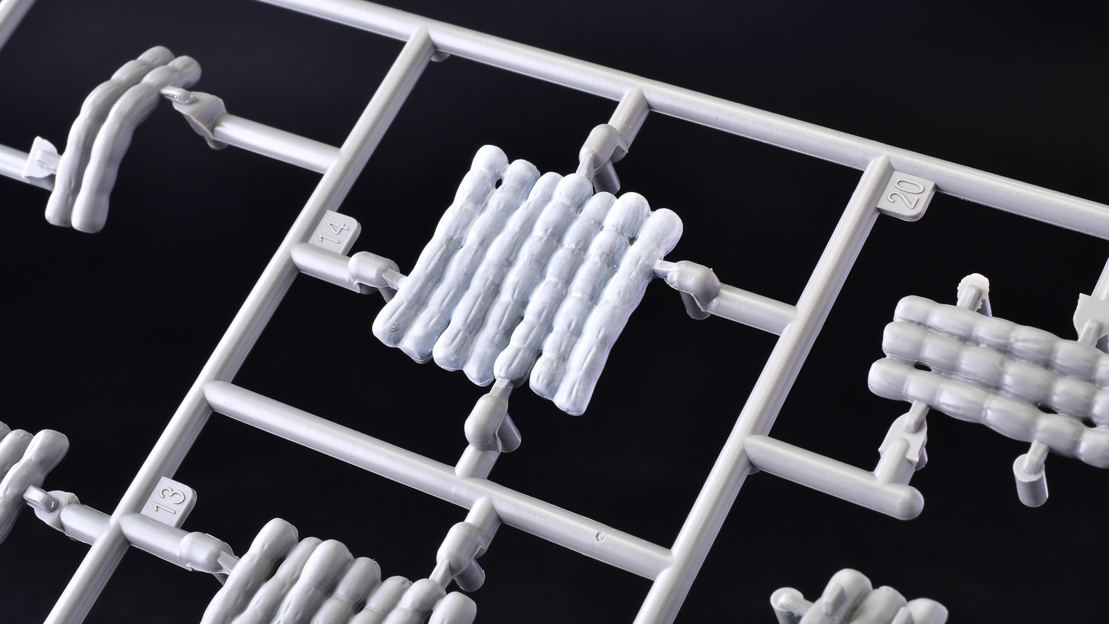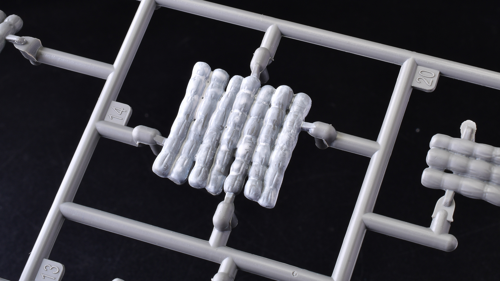 こちらは航空母艦赤城の艦橋に装備されたマントレット。体操マットをぐるぐる丸めたようなもので、お手軽な防弾装備として各所に取り付けられました。このパーツをサクッと塗ってみましょう。