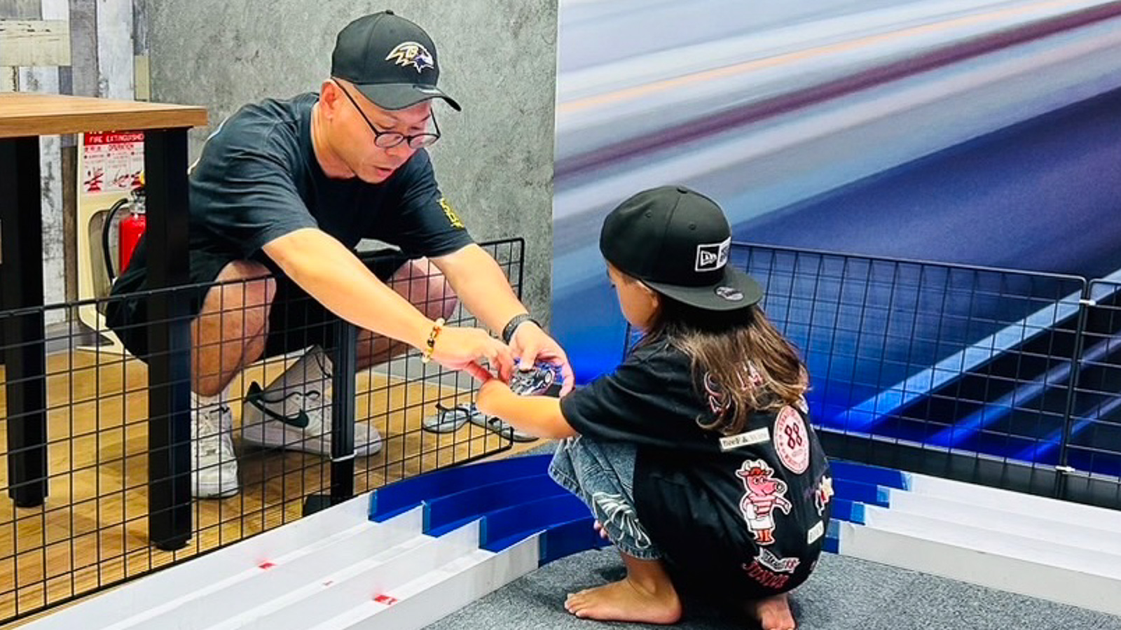 こうなったら親子で夢中ですよ。店内のパーツを吟味して買い、セッティングをして再チャレンジ。今度は何周走っても大丈夫でした!! この時息子はミニ四駆が想像以上に速くてサーキット走行が激しいものだと驚いていました。 他にミニ四駆のお客さんは居ませんでしたが、店内に響き渡る走行音につられて家族連れが次々に見学に来てくれたのもすごく嬉しくて「おー!ミニ四駆だ懐かしい!」「おー!マグナムだ!懐かしい!」と、明らかに同世代のアニキファーザーが目をキラキラさせてみていました。 みんな30年前は熱いミニ四駆レーサーだったのですね。