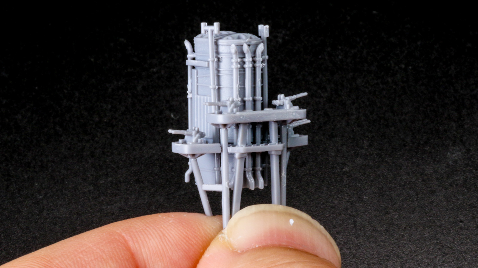 この集合……! 煙突のファンネルキャップはくり抜かれ、内部の仕切りも作られて、そのうえで周囲の蒸気捨て管、機銃座の支柱など細いパーツをバシバシとつけていくところ、組み立てのハイライトになっています。
