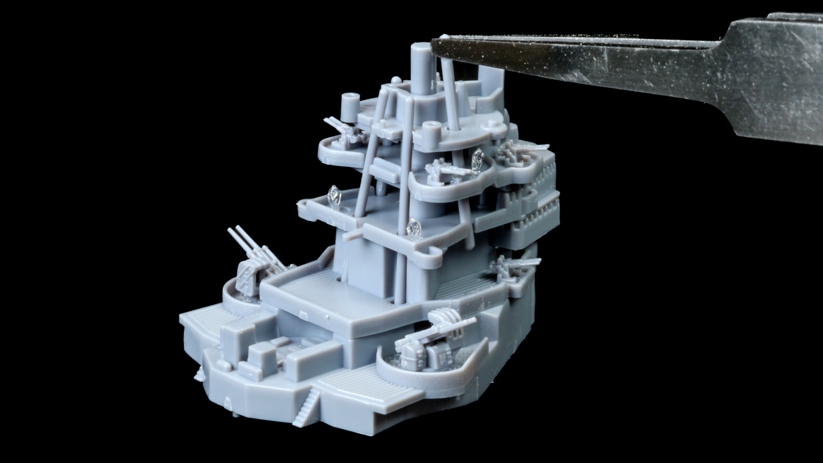 アオシマが1/700艦船模型用の兵装類を新たに作ったということは、そのラインナップすべてが新たになったことと同義。今回新武装が託された戦艦長門は、アオシマのキットのなかでもひときわ大きく、そしてその正統派戦艦スタイルは組んでいて楽しいプラモデルの筆頭です。対空兵装、艦載機、錨、御紋章……かつて共通ランナーだった兵装がアオシマ製へとリニューアルされたのですが、じつは長門はそれ以前にもこっそりと対空兵装などが新規開発されています。そう、長門はアオシマのなかで「新しい挑戦をする場所」でもあるのです。