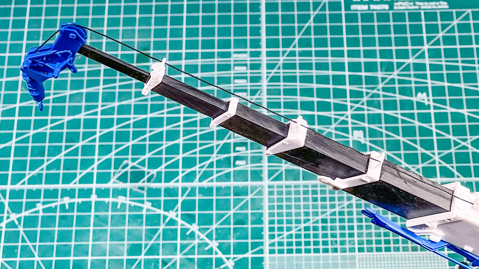クリアランスが緻密なので塗装厳禁という指示も書かれているのだけれど、未塗装でもかなり固く設計されているようで、結局具合を見ながらいい塩梅まで各ブームの4面にヤスリをあてる作業を繰り返した。もう一台作ろうと考えた時に尻込みしてしまう大変さだったので、今後さらにクレーンのラインナップが増えていくのなら改良して欲しいポイントだ。