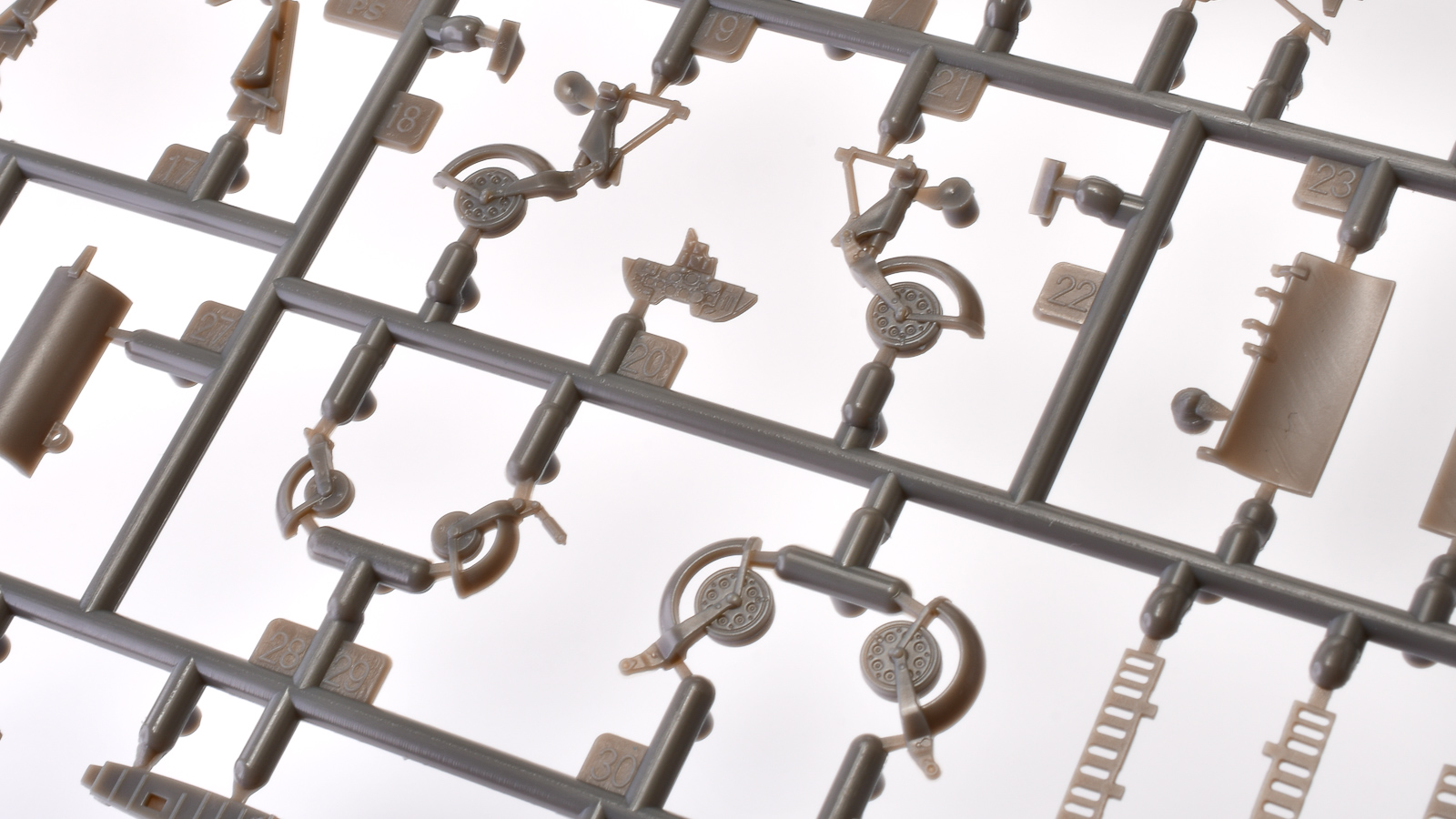 タミヤやハセガワ、ファインモールドが日本の飛行機に力を入れるように、イギリスのメーカー・エアフィックスも自分たちの飛行機にはプライドを持ってキット化してきます。そのおかげでイギリス機だけでしか味わえないユニークな飛行機をプラモデルで堪能できるのです。本キットも完全新規金型で送り出されており、各パーツはバキバキにシャープ。しかも昨今よく見られる「硬めのプラスチックで成型されたエアフィックス製プラモ」に部類されます。エアフィックスのプラモといえば「淡いブルーグレーのような成型色=柔らかめのプラスチック」が特徴なのですが、最近は大型モデルやジェット機などにこの硬めのプラが採用されたりしています。僕は実は柔らかめの方が好きなのですが……。その理由はのちほど。