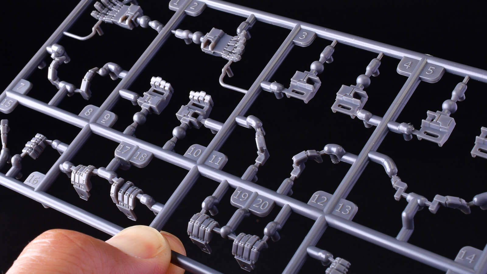 そしてプラパーツとして異例の完成度となっているハンドパーツ。このランナーだけでも「MODEROID:手」という商品名で販売して欲しいほどです。手首が最高にかっこいいと、メカの立ち姿に力が入り、一気カッコよくなります。