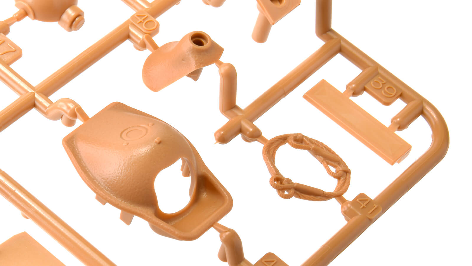 48MMの良いところは、細かなパーツ分割が少ないところ。手のひらサイズの模型ですので、組みやすさがかなり重視されています。このように1パーツで成型されているパーツが多いのです。