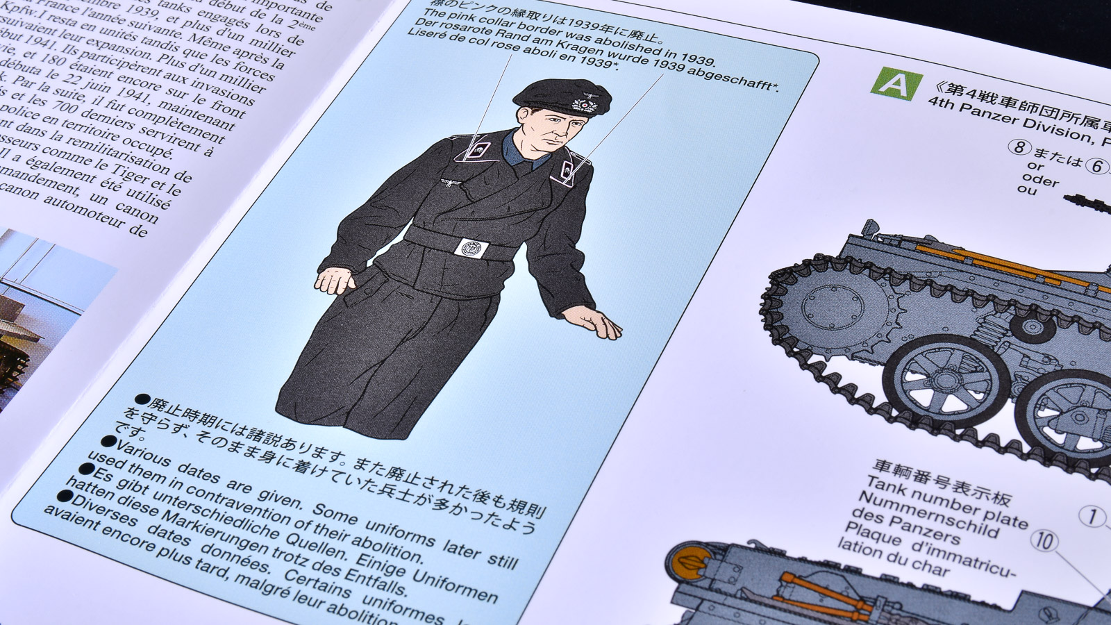 で、説明書にも書いてある通り、このビンクのパイピングが廃止されたタイミングがよくわからない。説明書には1939年とありますが、手元の資料(『第2次大戦 各国軍装全ガイド』並木書房)では1942年と書いてあったりして、まさに「諸説あります」という状態です。とはいえ「廃止された後もそのまま着てた兵士が多かった」というのは確からしい。兵士からすれば、「俺はパイピングが無くなる前から戦車に乗ってたベテランなんだぜ」というアピールになるわけで、そりゃ取るわけないよなという気もします。