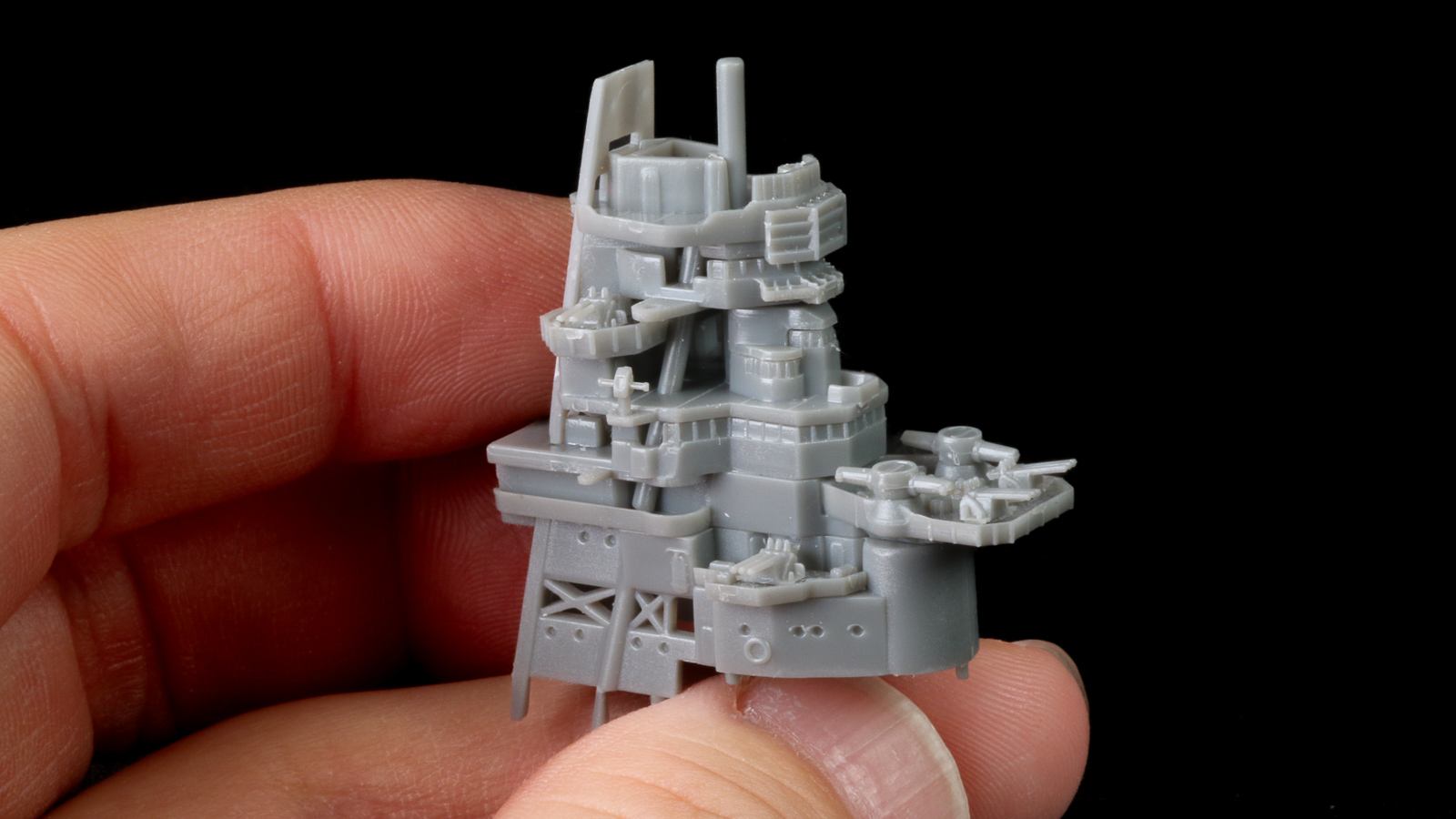 艦橋の組み立てでは、内部床面に微細な彫刻もあり、リノリウムなのか鉄甲板なのかがよくわかります。積み上げる前からパーツの濃さと内部をイメージさせる構造で盛り上がります。