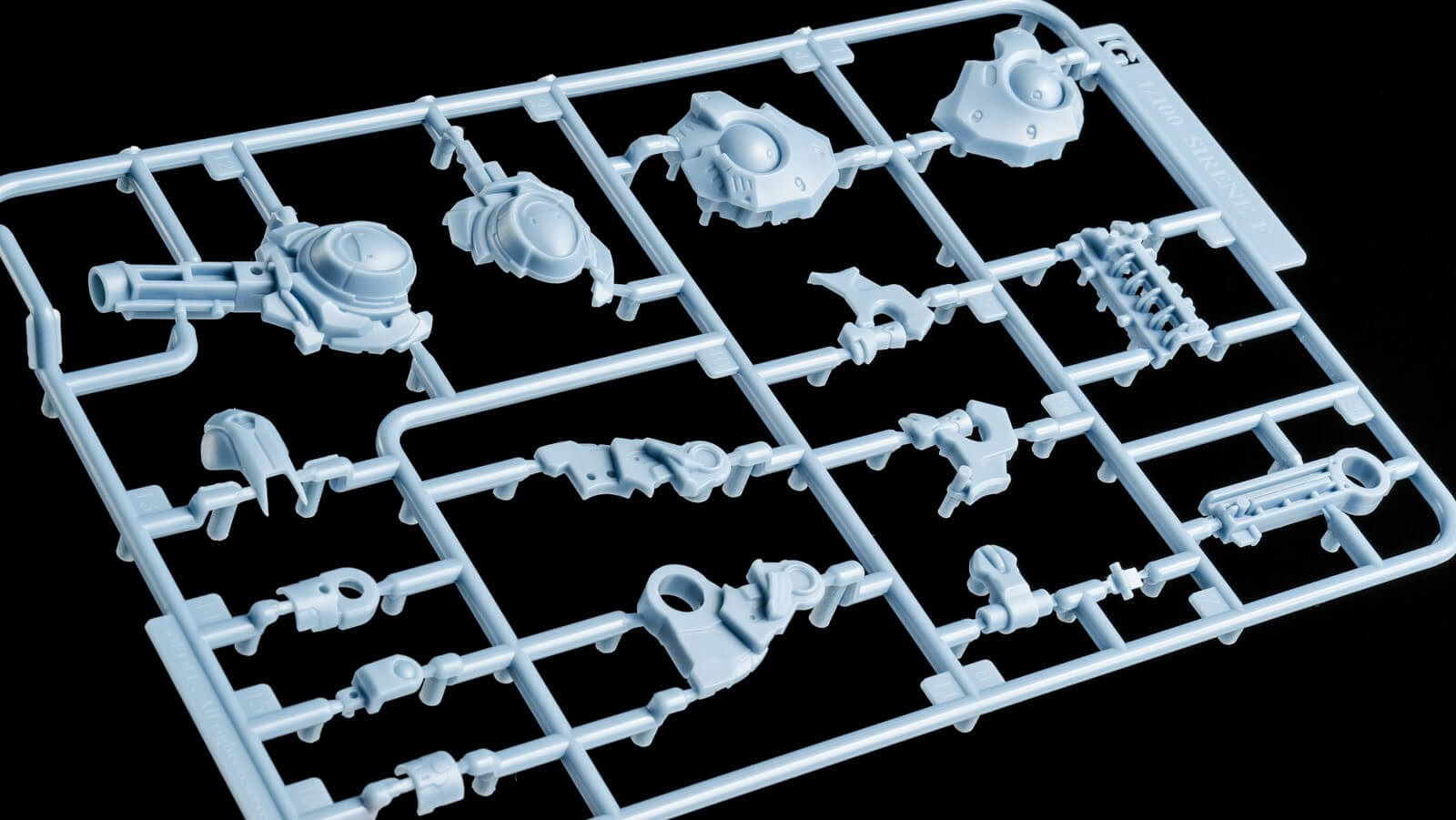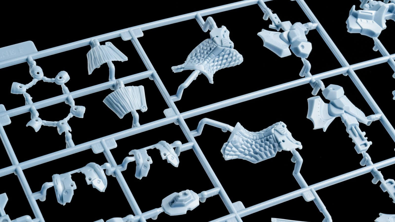 スライド金型のため面白い形状になったランナー。側面のシャープなディテールや嵌合のためにリッチに金型を設計しているのがわかる!