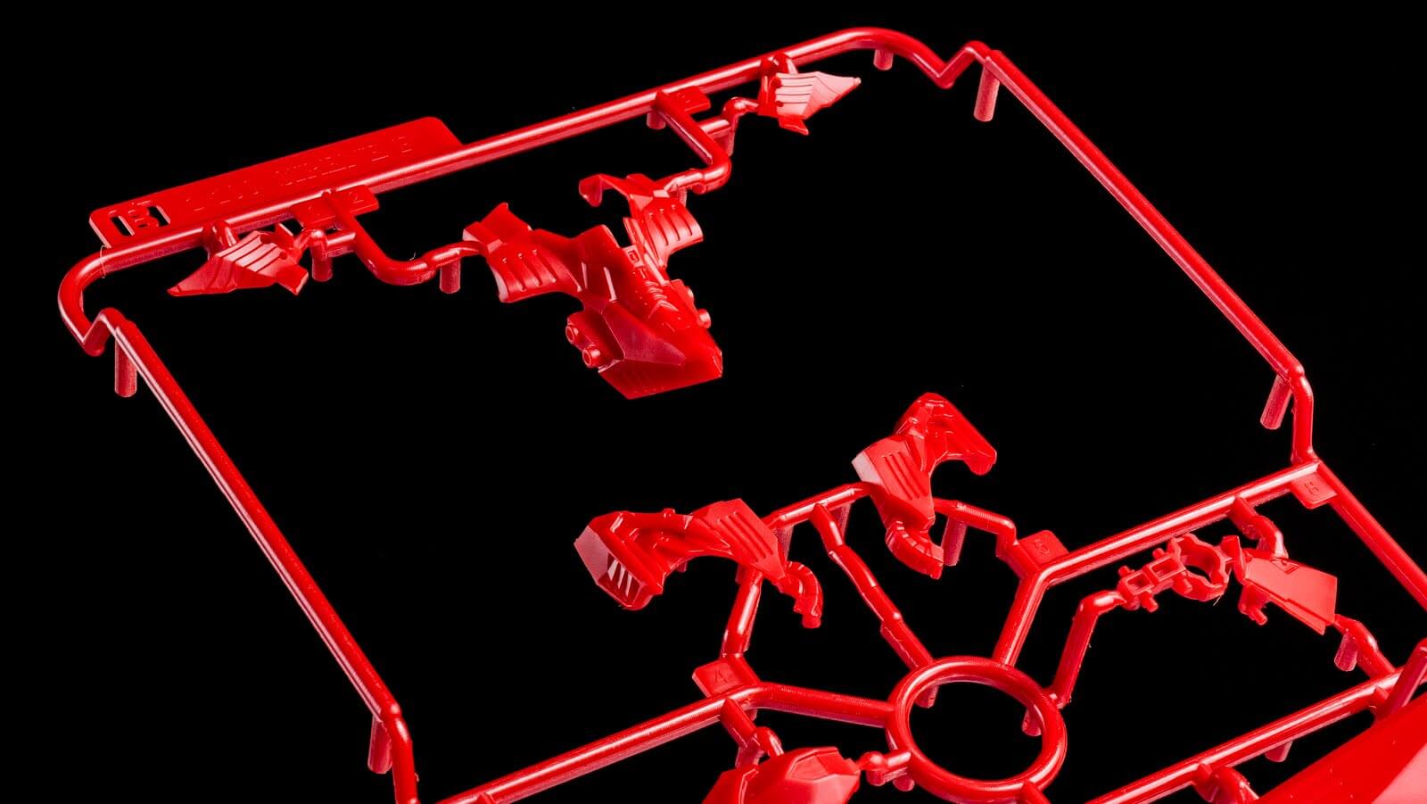まずはこの成型色。深みある赤が見事に表現されている。全体的にキレイなアールを描く表面と尖ったエッジが気持ちいい。本シリーズも、回を重ねるごとに確実にパーツ成型の精度も向上しているのがわかる。