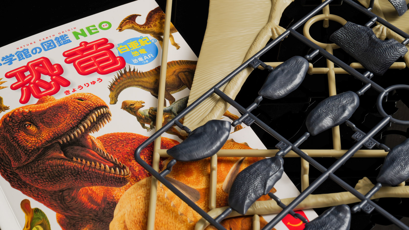 マクドナルドのハッピーセットのおまけで恐竜図鑑をもらったことから「恐竜も組んでおかないとな」となった私がまず手軽さゆえに手にしたのがプラノサウルス。これは骨格でも組めるしその上に外皮を乗っけた状態でも組める(しかも関節とか動く)というすさまじいバリューを有しています。