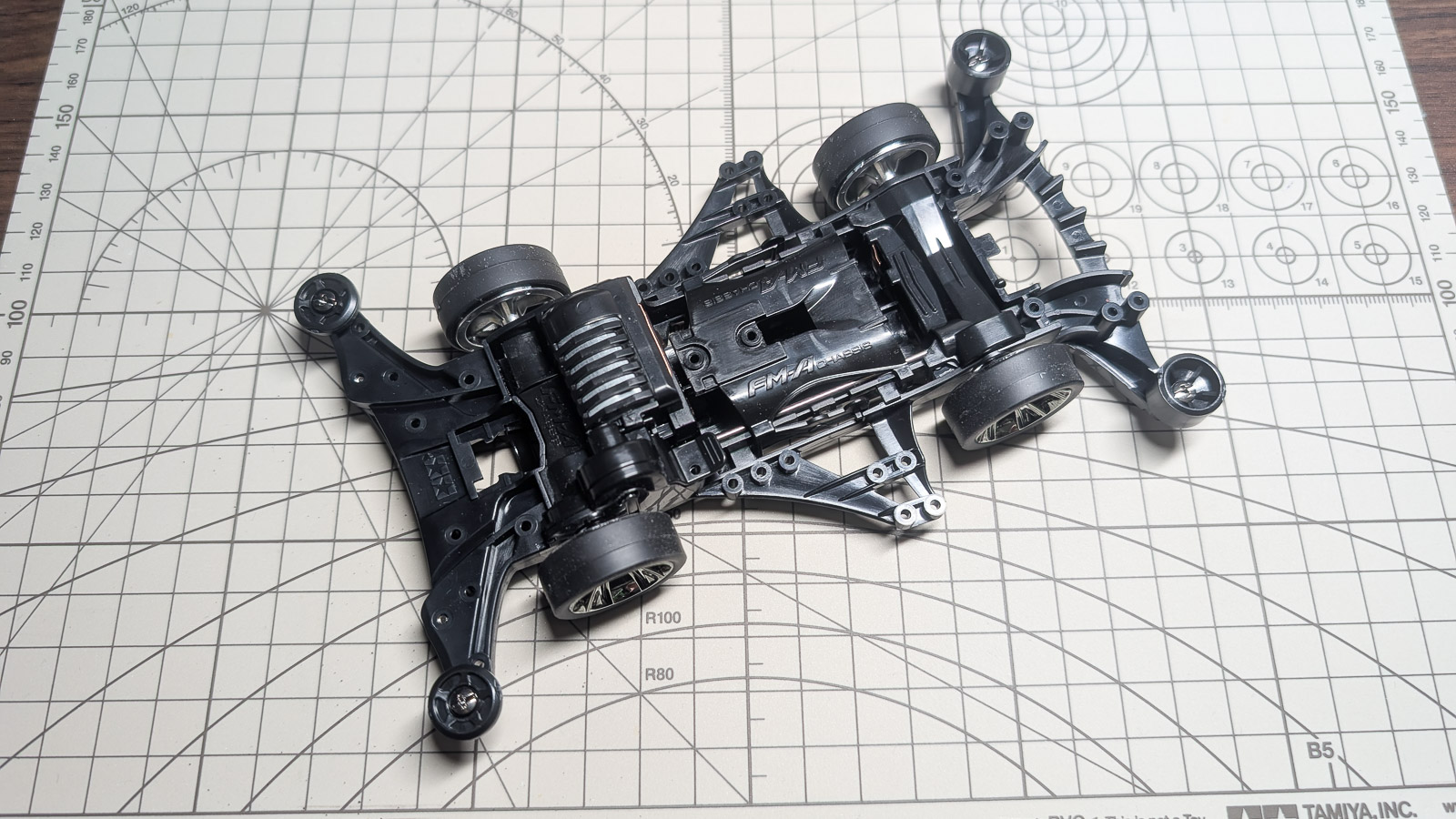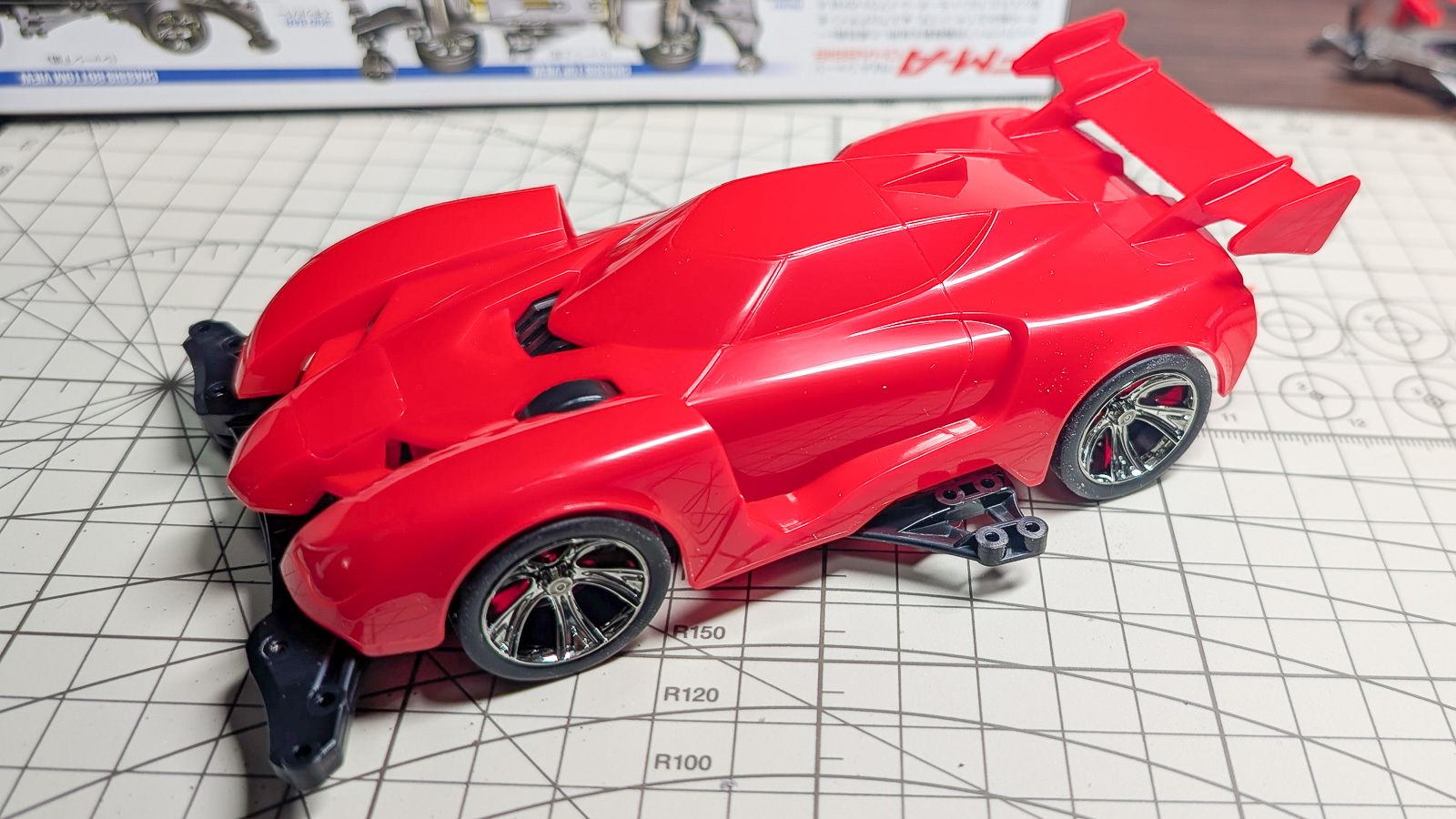 子供の頃に夢中になったものに気軽に再度飛び込んでみると、全く違う景色が机の上に広がって最高に楽しい時間を過ごせました。知らなかった進化したメカニズムに、想像以上に驚かされました。ボディに加え、シャーシのデザイン性も高いので、飾っているだけでも高い満足度を感じます。組み上がったマシンを見て、またミニ四駆熱が再燃。出戻りってめちゃくちゃ楽しい!