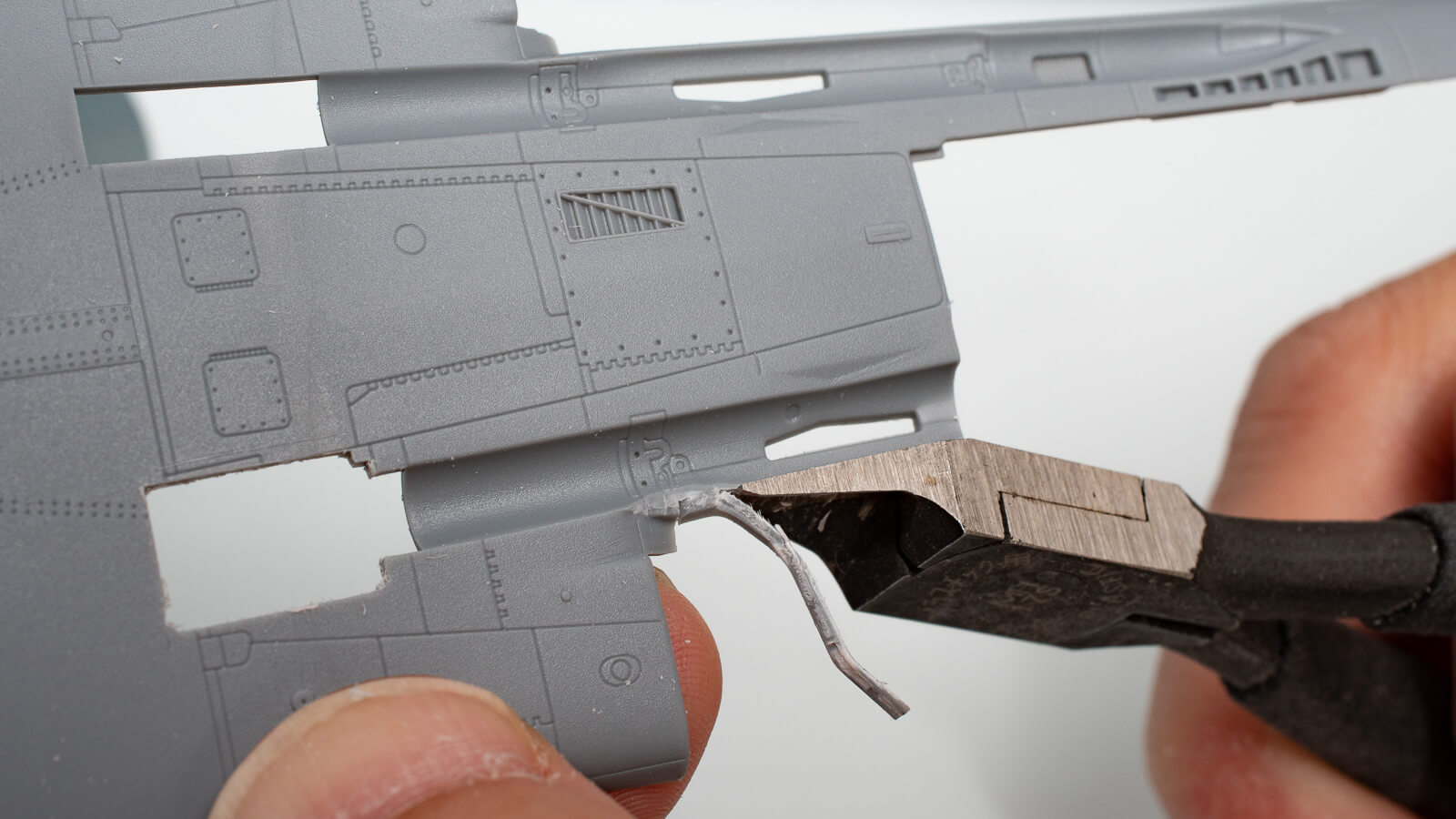 さて、少しだけ時代が進んだので、新鋭の戦闘機F-4にもワイルド・ウィーゼルさせようということになりました。しかしまだショートノーズのF-4Cに搭載ということで、機内に搭載するという改修にはできず、電子戦装備をほぼ機外に搭載するという方法にとどまっています。そして、その搭載用改修を実機のように担当するのは、このキットを作るあなたなのです。