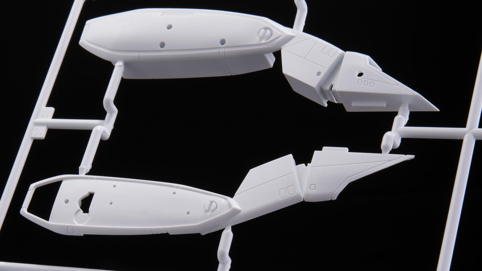 ストライクバルキリーの機体においての最大の変更点である折り曲げた脚部やバックパックなどが成形されたランナー。この一枚で、通常のファイターバルキリーとは大きくシルエットが変わった姿を楽しめます。