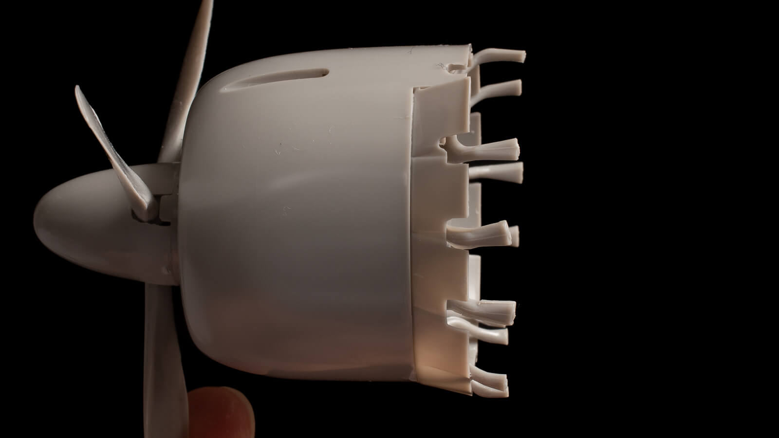 これをひとつずつ接着してエンジンを作っていきます。レジェンドなプラモなので今のプラモほどバチピタではありません。そのため少しずつズレが生じて、その結果僕はエンジンから推力式単排気管をキレイに出すことができなかったのです。絶望しました。しかしです……。