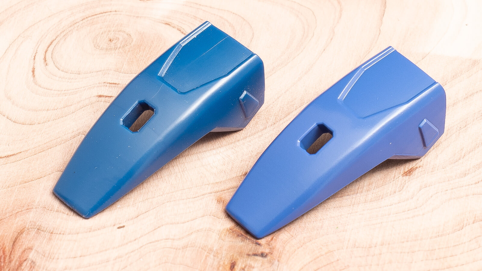 NAZCAのコバルトバイオレットは模型用塗料の並んだ店の中では抜群に鮮やかな青に見えます。NAZCAブランドは隠蔽力が高いので重宝するんですが、「バイオレット」の名のとおり、けっこう赤が混ざっていて紫に近い。そして今回青いパーツに塗ってみたら、思ったよりマイルドな発色。いわゆるコバルトブルーの目に沁みるような強力な発色を想像していると「そこまで鮮やかじゃないんだな」ということに驚かされます。もちろんイッパツで発色するので塗り心地は最高なんですが、その性能を担保するために白がけっこう混ざっているんだなぁということに気付かされます。