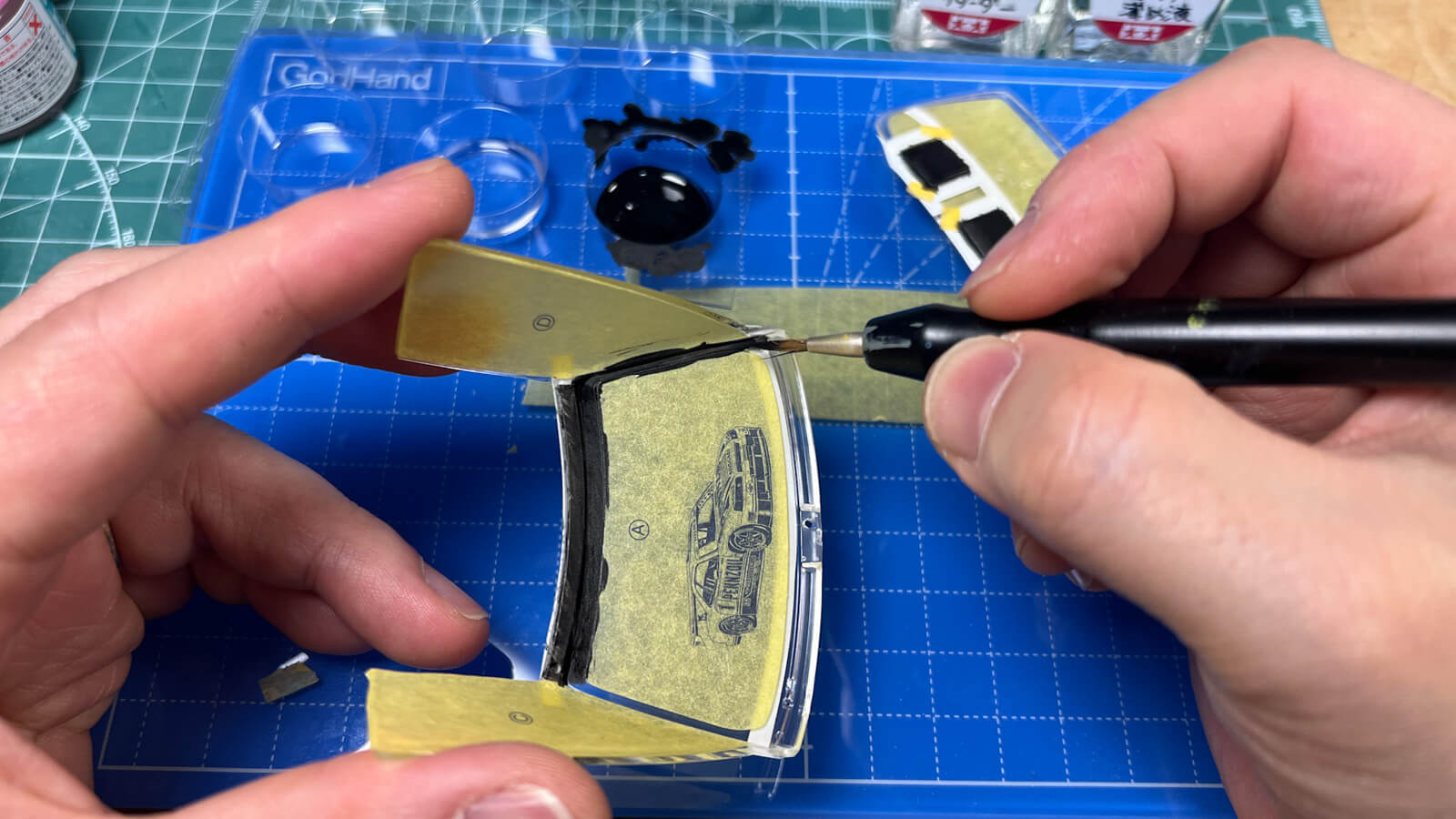 5年前なら「失敗した」ってフテ寝しちゃってたよね。ガイアノーツの精密綿棒を使うと細かいところやキワをこれでもかと攻めていける。日々共有されていく便利グッズや裏技テクニックに救われる。日々プラモについてアンテナを張ってきてよかったよ。そんなアンテナ張って得た知識も実際やってみないコトには報われる機会は訪れない。窓枠がきれいに塗れた。ボディは成形色を生かすと決めた。窓のフチ塗れただけで車ってなんだかもうほとんど完成なのでは?みたいな気分になるのだな。続く!