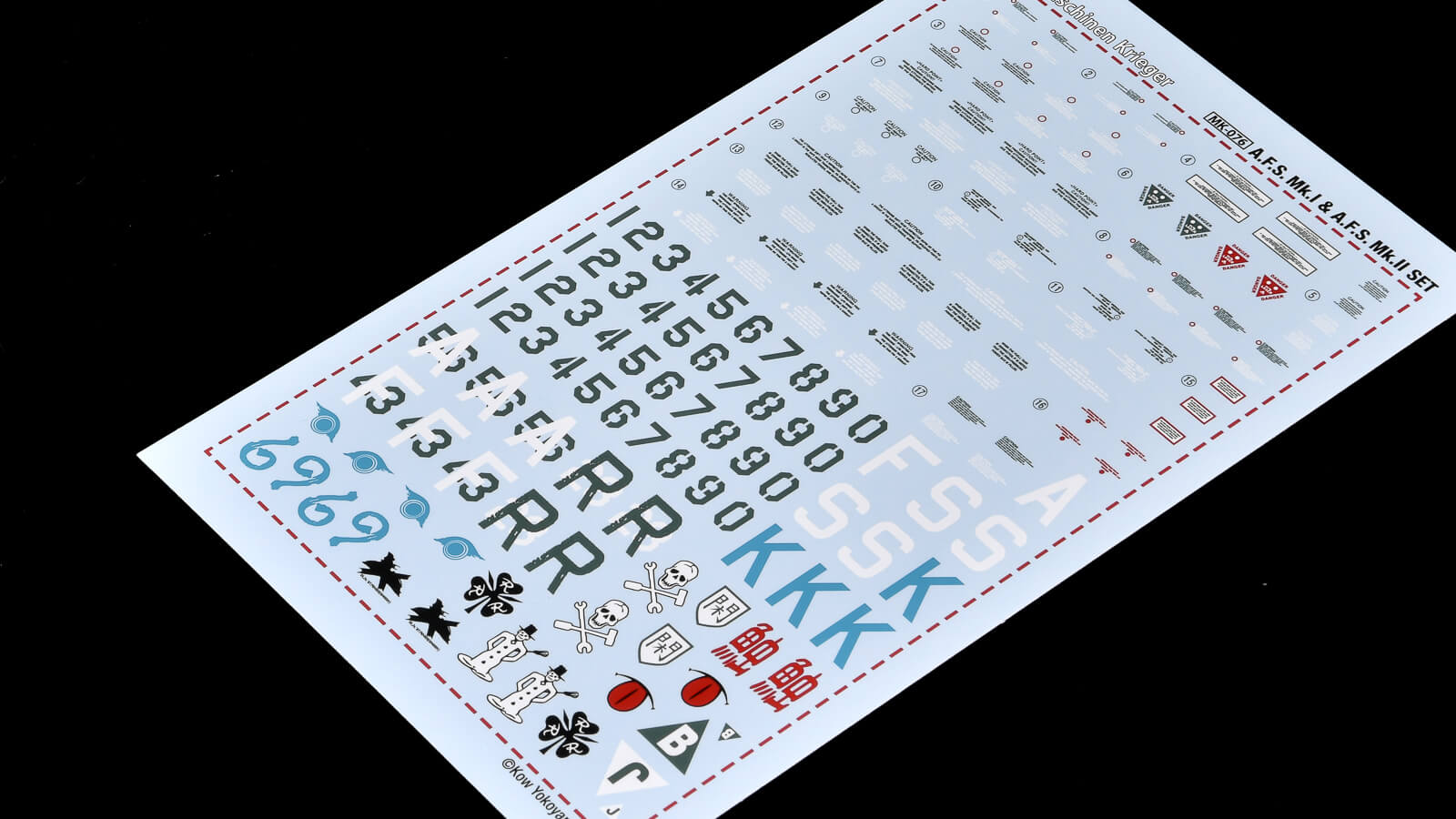 マシーネンクリーガーには、傭兵軍とシュトラール軍という二大勢力が存在します。一般的に、傭兵軍はアルファベット、シュトラール軍は数字のコードレターで識別されます。ところが、連載初回に登場したA.F.S.は、まだこの整理がされる前だったため、傭兵軍でありながら数字メインのコードレターが使われていました。そこで今回のA.F.S.セット発売にあたって、数字の上にアルファベットが“上書き”されたような新たなコードレターが追加されるという、粋な対応が施されたのです(月刊ホビージャパン2025年7月号「Ma.k.in SF3D」より参照)。