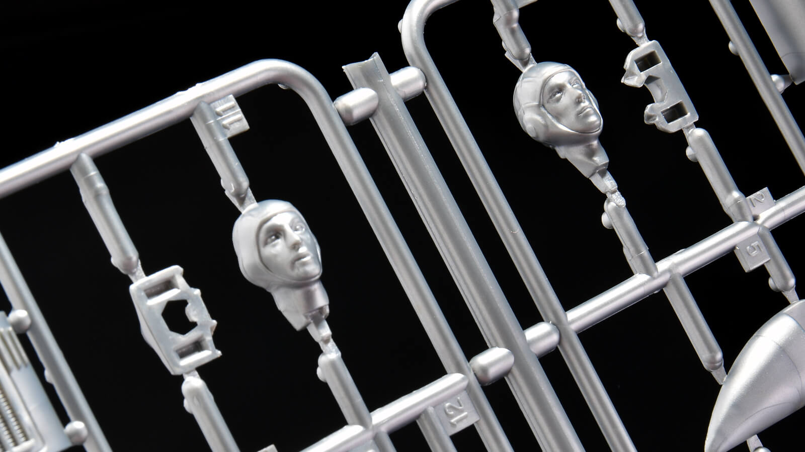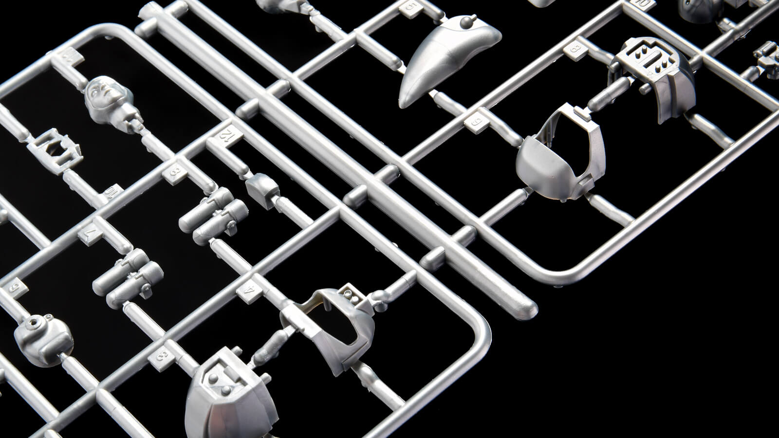 Mk.IとMk.IIの差分をパーツ化したHランナー(プラモデルのパーツが繋がっている枠のこと)とGランナーのパーツ配置が最高です。頭部、ヘルメット、背中などのパーツがほぼ同じ場所にそれぞれ配置されているので、このランナーを眺めるだけで、Mk.IとMk.IIのスーツの違いが見えてきます。