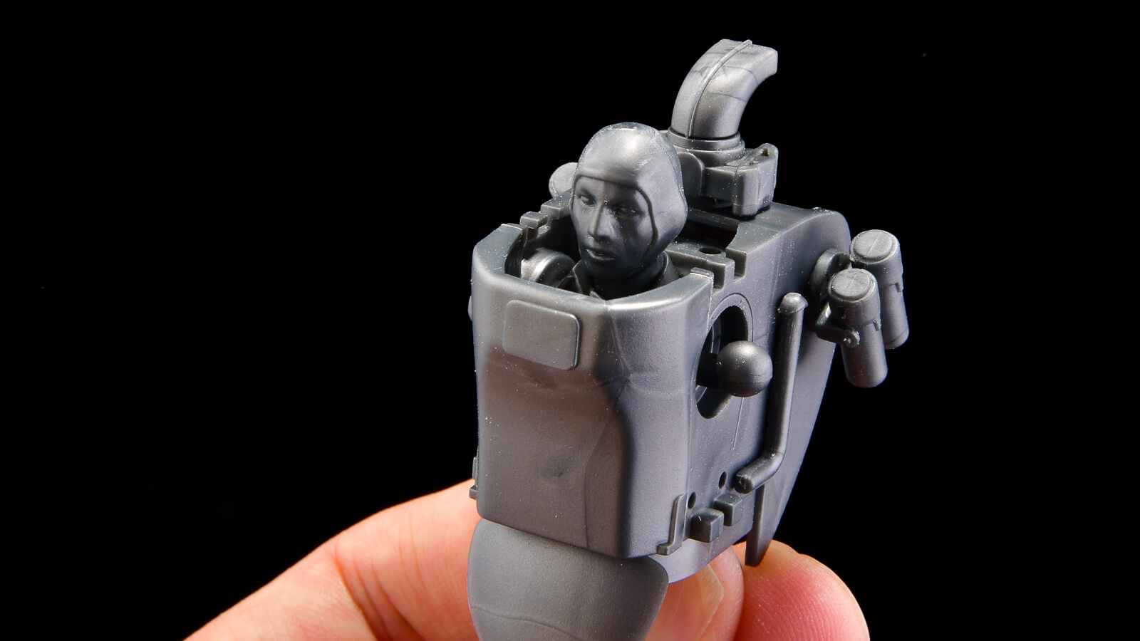 胴体のパーツに、頭部とシャツの襟元だけが立体化されたフィギュアを差し込みます。これだけで、中に人が入っているように見えます。マシーネンクリーガーのプラモは、このような見立てのうまさを味わうこともできるのです。