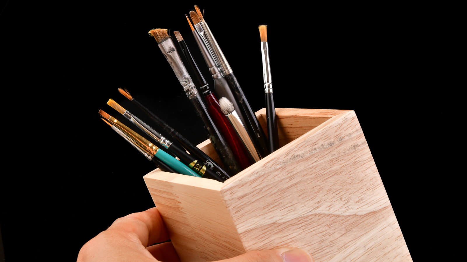 木製収納ケースというので、このようにペンや筆を入れたりするのが本来の用途。木の温もりで、机の上にほんのりと暖かい空気をもたらしてくれます。でも、今回はプラモを飾る台座になってもらいます。その最大の理由がこちら。