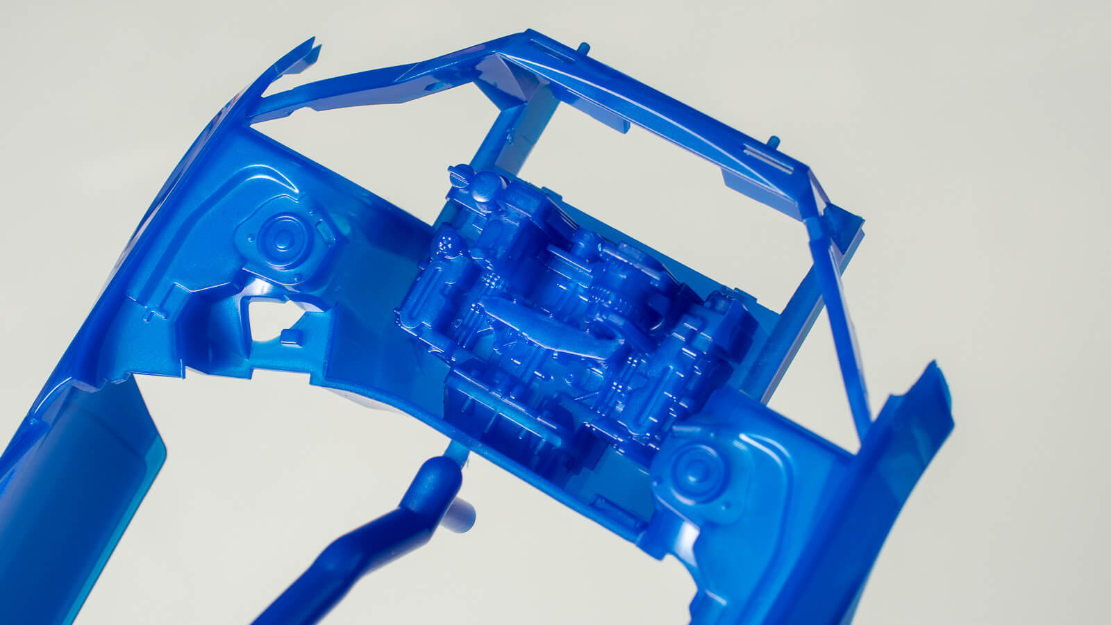 コンパクトで低重心、シャープなスタイリング……。まるで実車を見たときに感じるような言葉が自然と出てくる完成形。ライトの後部の盛り上がりや、細部の造作がより一層理解できます。