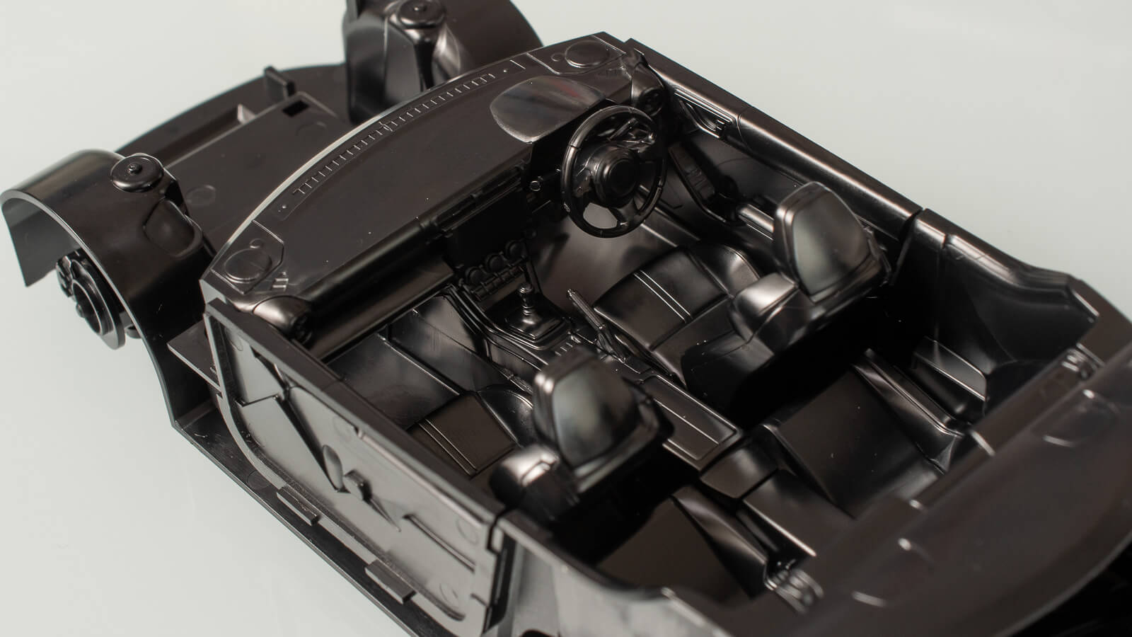 完成後は覗き込まないと見えないインテリアですが、その再現にも余念がありません。面白いのはフロントメーターが液晶になったことにあわせて、デカールを2種類用意しているところ。つくる人の内装のこだわりにしっかり応えてくれます。