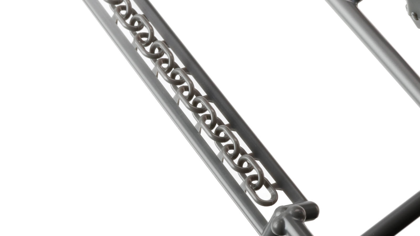 いやいや、一番驚くのは、端に揃った鎖でしょう。プラモデルっていうのはたい焼きみたいな金型にプラスチックを注入して生まれるものでぇ~……なんてこのサイトを見ている人なら釈迦に説法ですが、これを見て金型の姿を想像できる人はそうそういないでしょう。